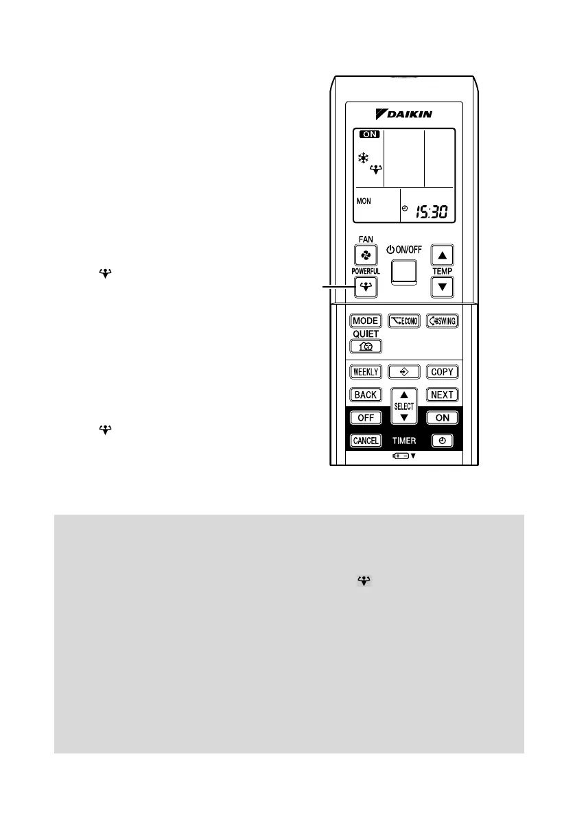 • POWERFUL Operation can only be set when the unit is running. Pressing the operation