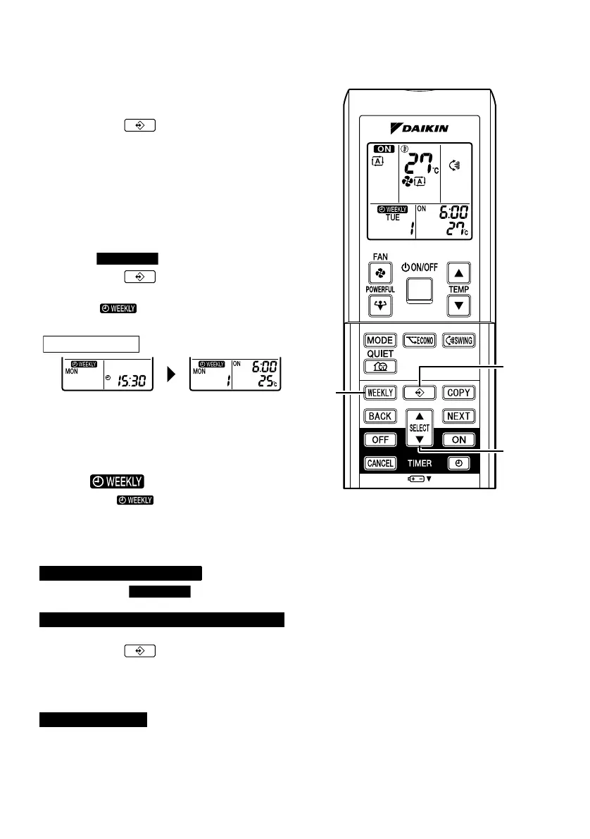 • To reactivate the WEEKLY TIMER operation, press the “WEEKLY button” again.