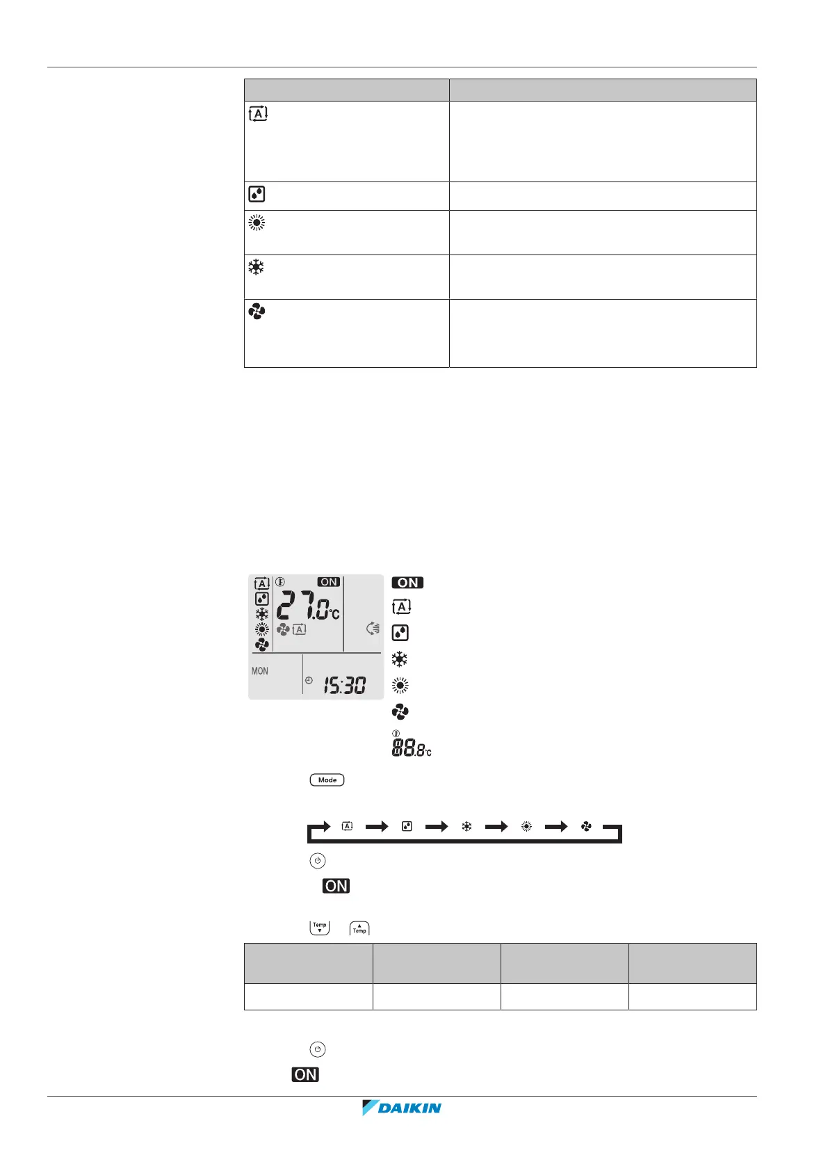 6.3.1 To start/stop operation mode and to set the temperature