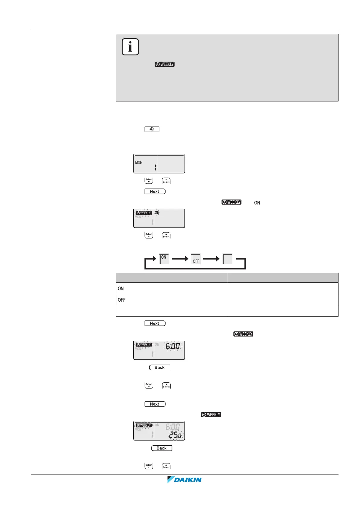 timer) can be set with the Weekly timer. Other settings are based on previous ON