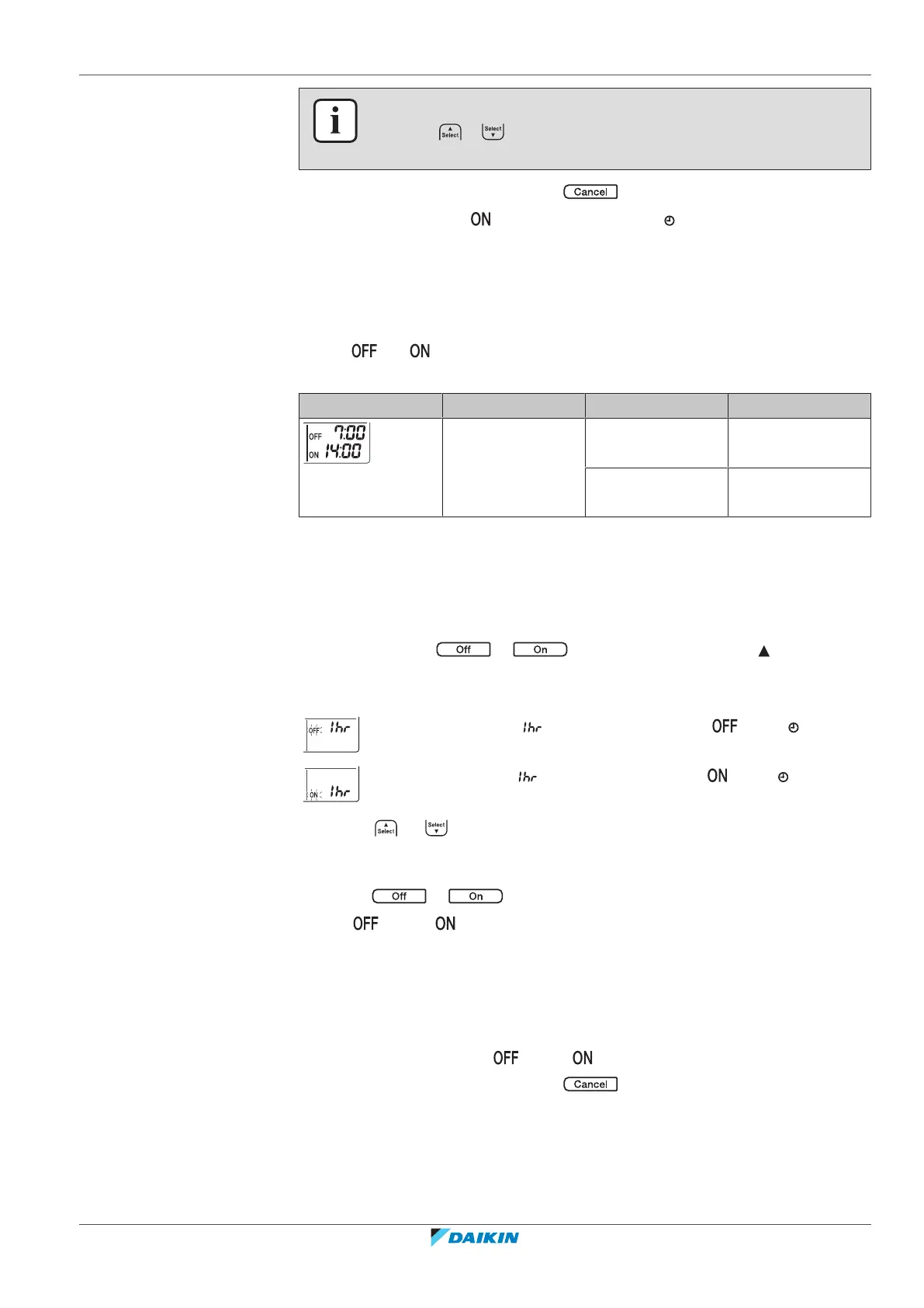 Result: and/or and the set time are displayed on the LCD. The Daikin eye