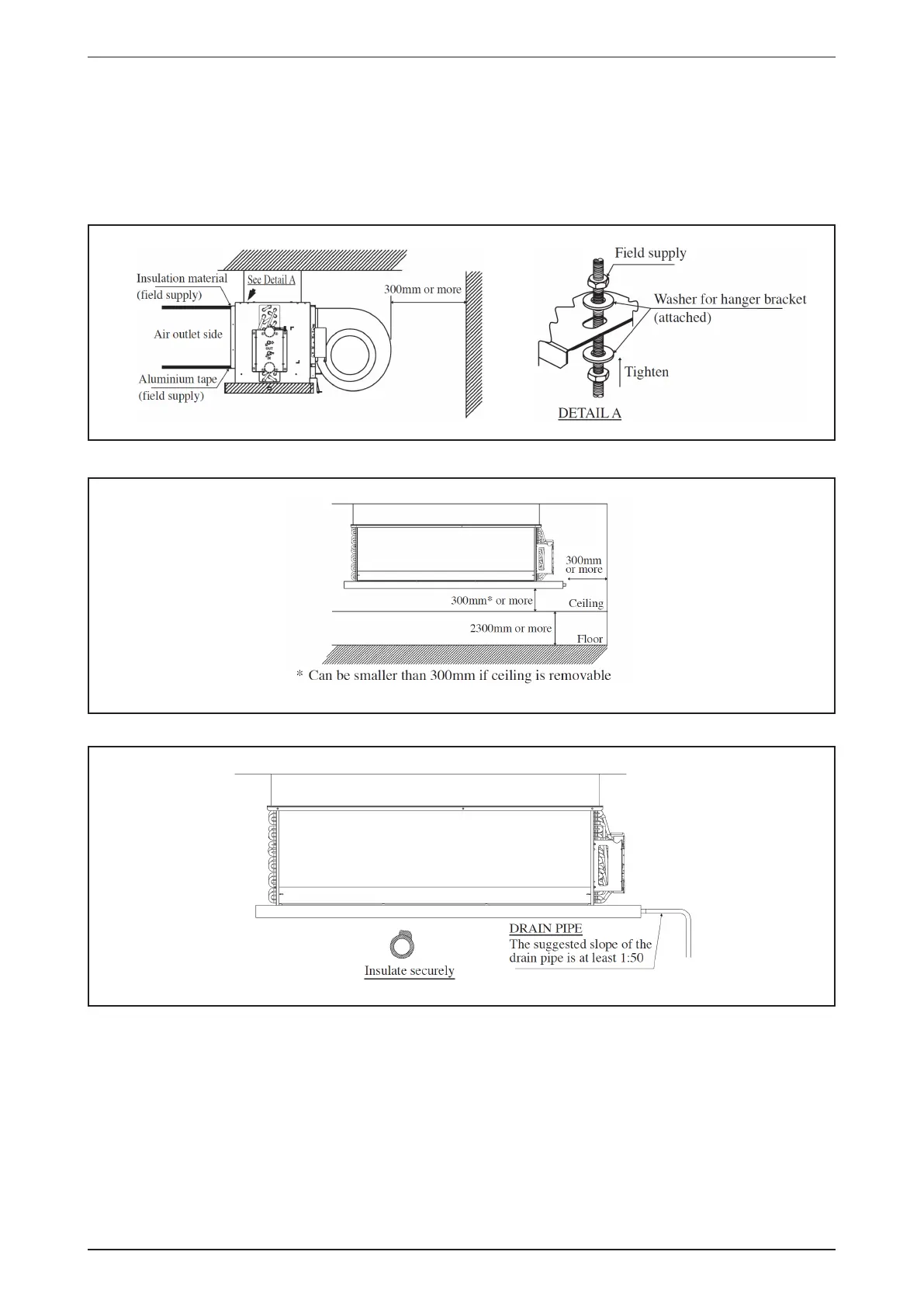 The indoor unit must be installed such that there is no short circuit of the cool discharge. Respect the