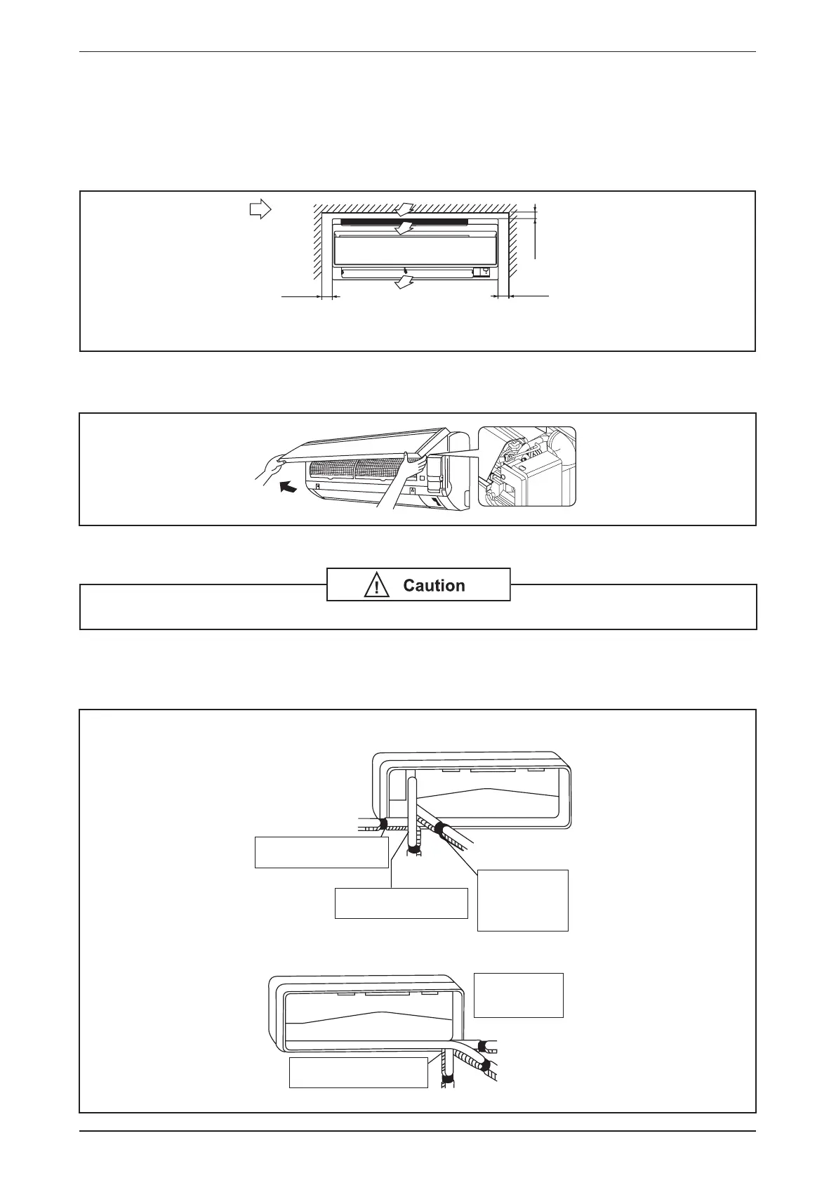 the hot return air. Please follow the installation clearance shown in the gure. Do not place the indoor unit