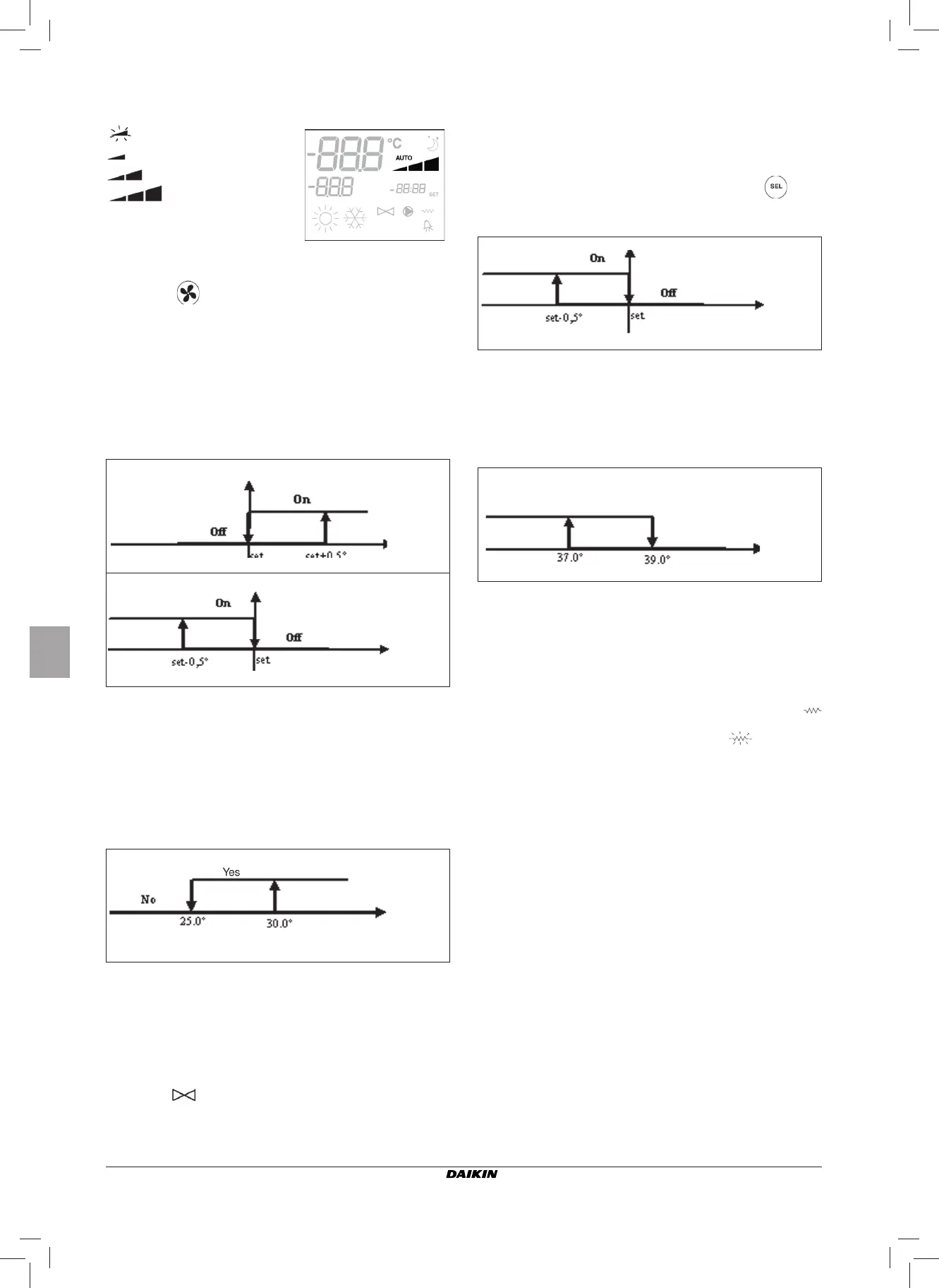 selected in the heating mode by pressing the Sel