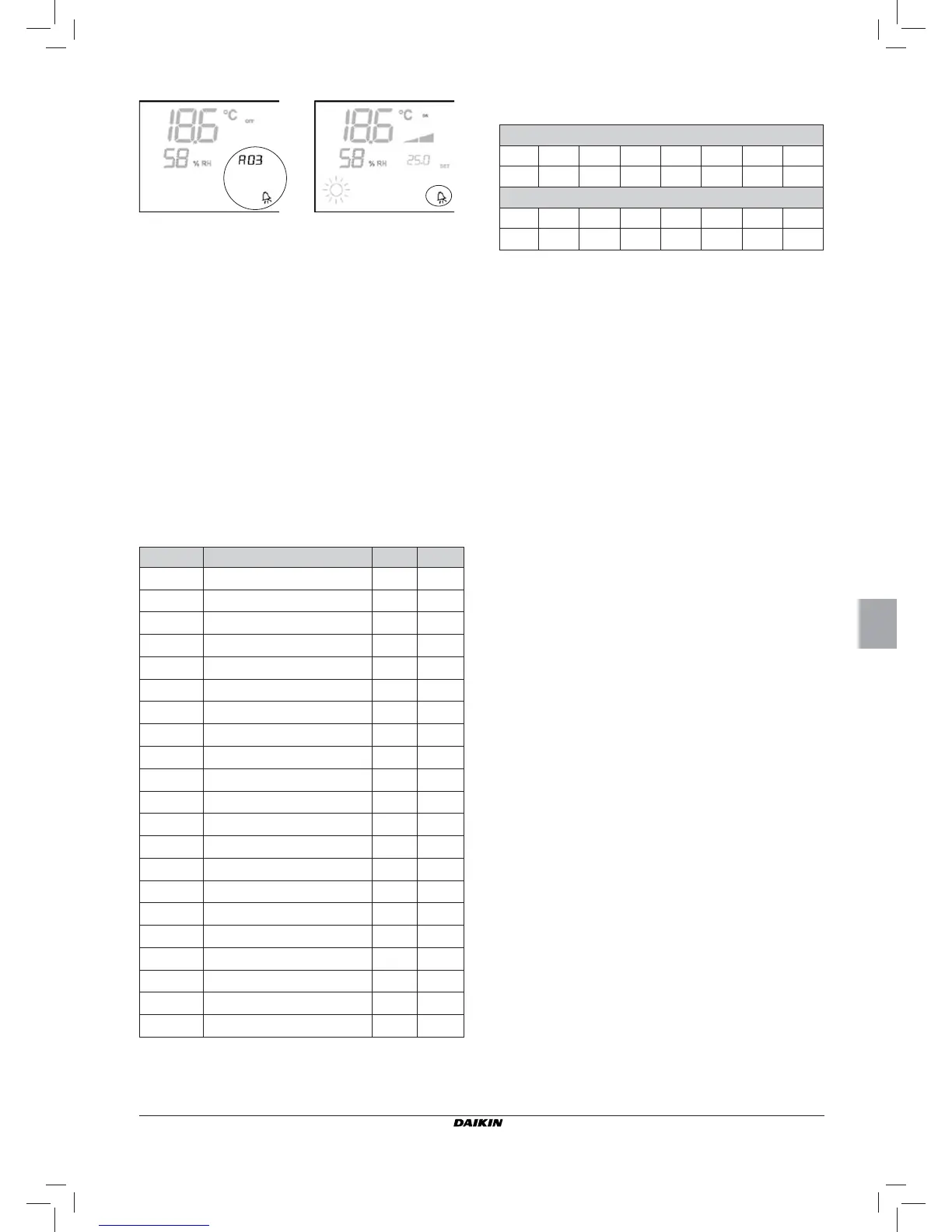N.B.: the alarm code is displayed only when the thermostat