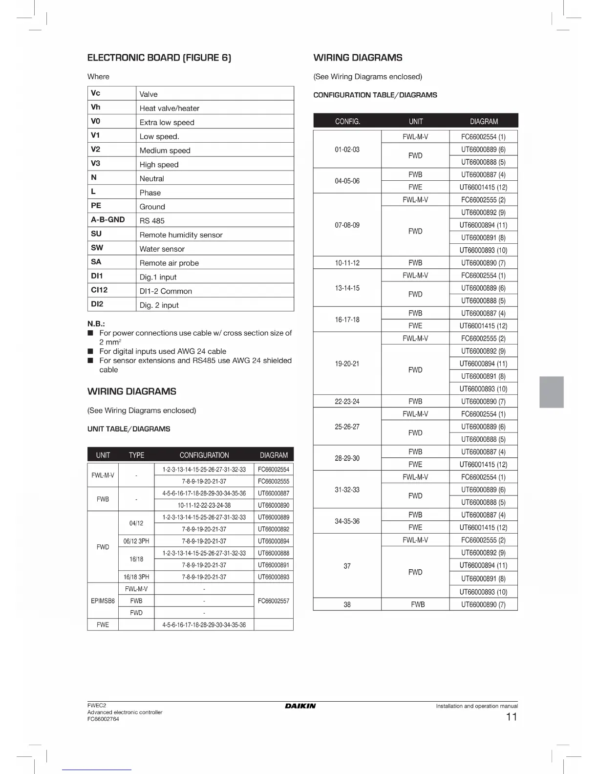 Daikin FWEC2 - Wiring Diagrams and Tables; Configuration and Diagram Tables; Unit Table;Diagrams
