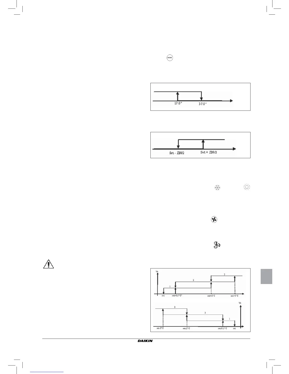 De functioneringsmodaliteit van de thermostaat wordt op het