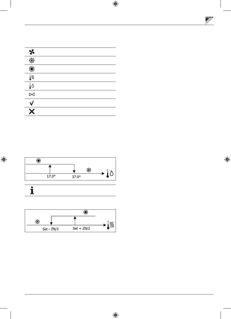 display by the symbols COOLING and HEATING.