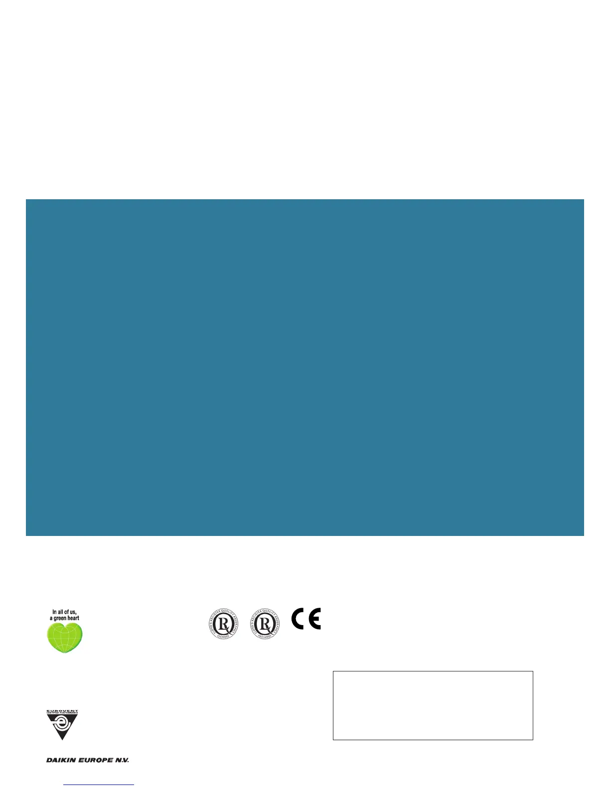Responsible Editor: Daikin Europe N.V., Zandvoordestraat 300, B-8400 Oostende
