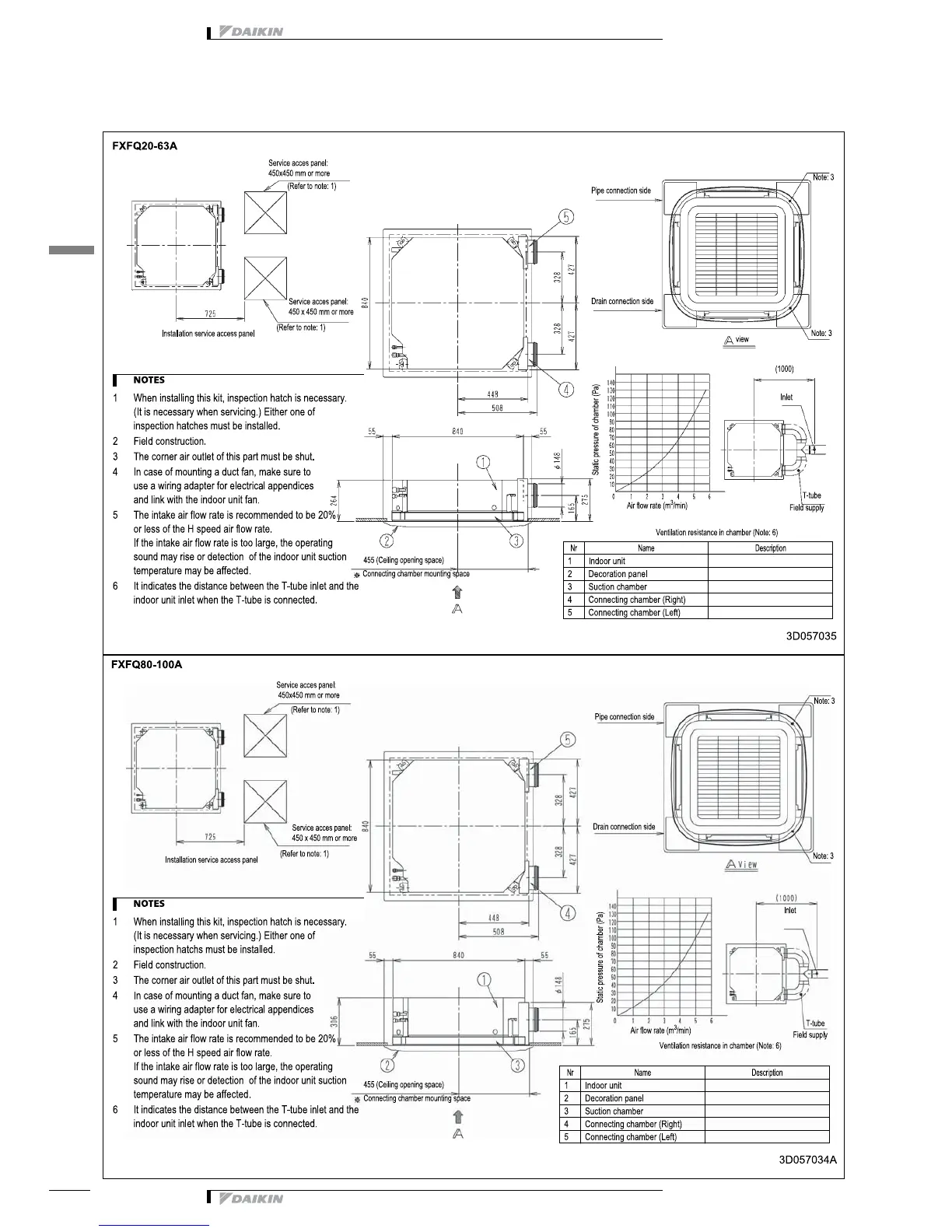 Daikin FXFQ-A - Dimensional Drawings with Fresh Air Intake