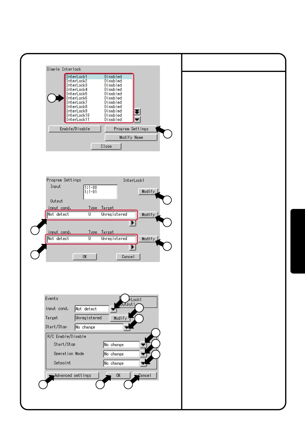side, the interlock Setup setting screen will be