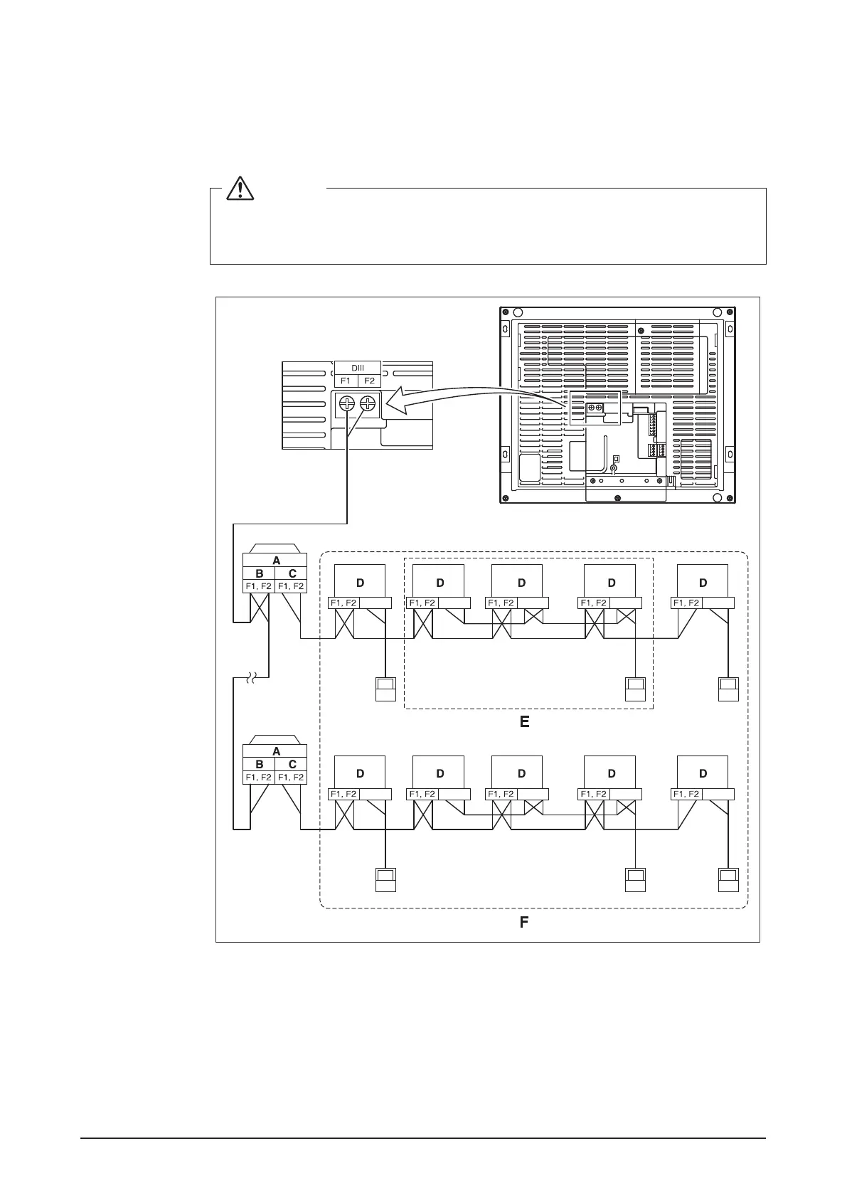 To connect the DIII-NET communication line, use F1 and F2 terminals that are located on