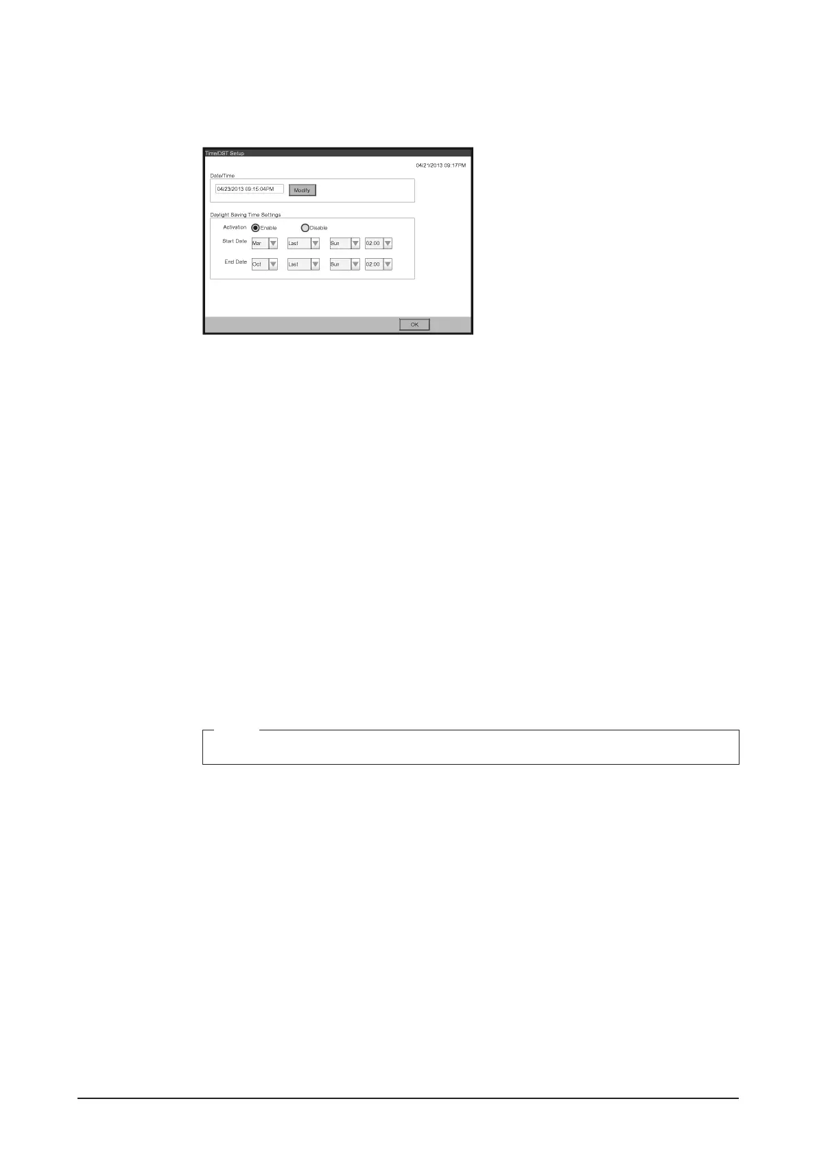 <Time/DST Setup screen>