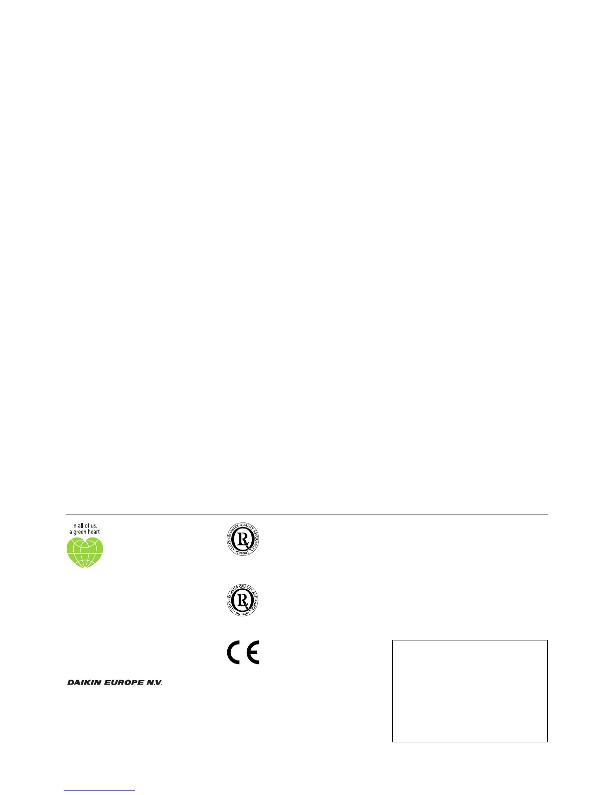 Responsible Editor: Daikin Europe N.V., Zandvoordestraat 300, B- 8400 Oostende