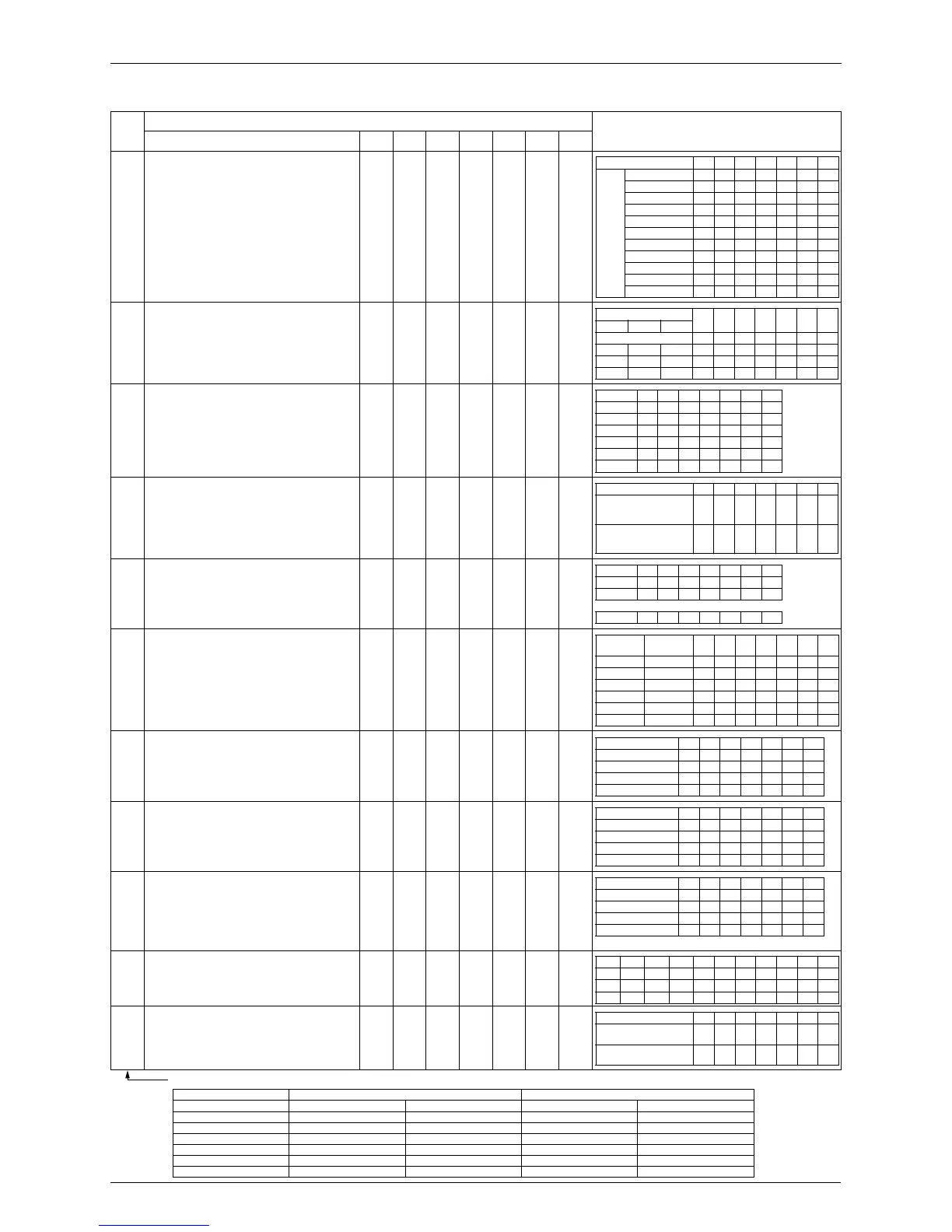 The number in the “No.” column represent the number of times to press the SET (BS2) button.