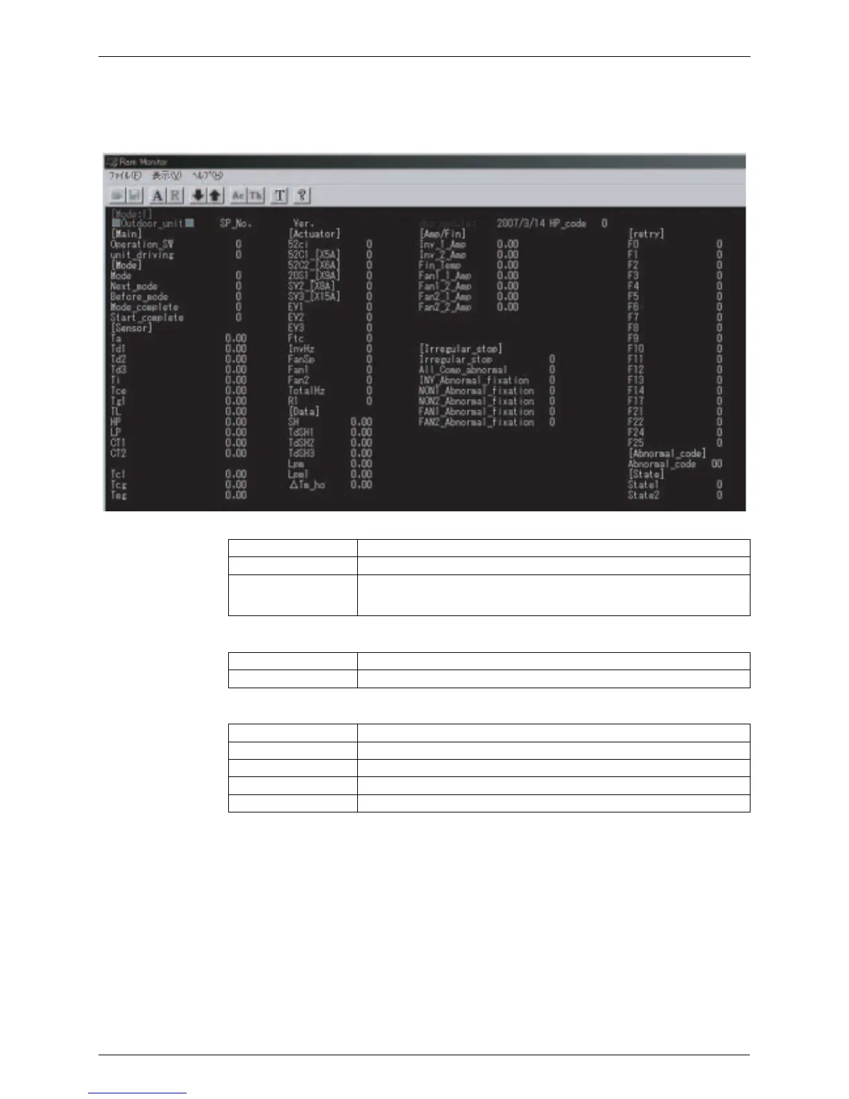 Using the RAM monitor makes it possible to check the following operating data. Use this