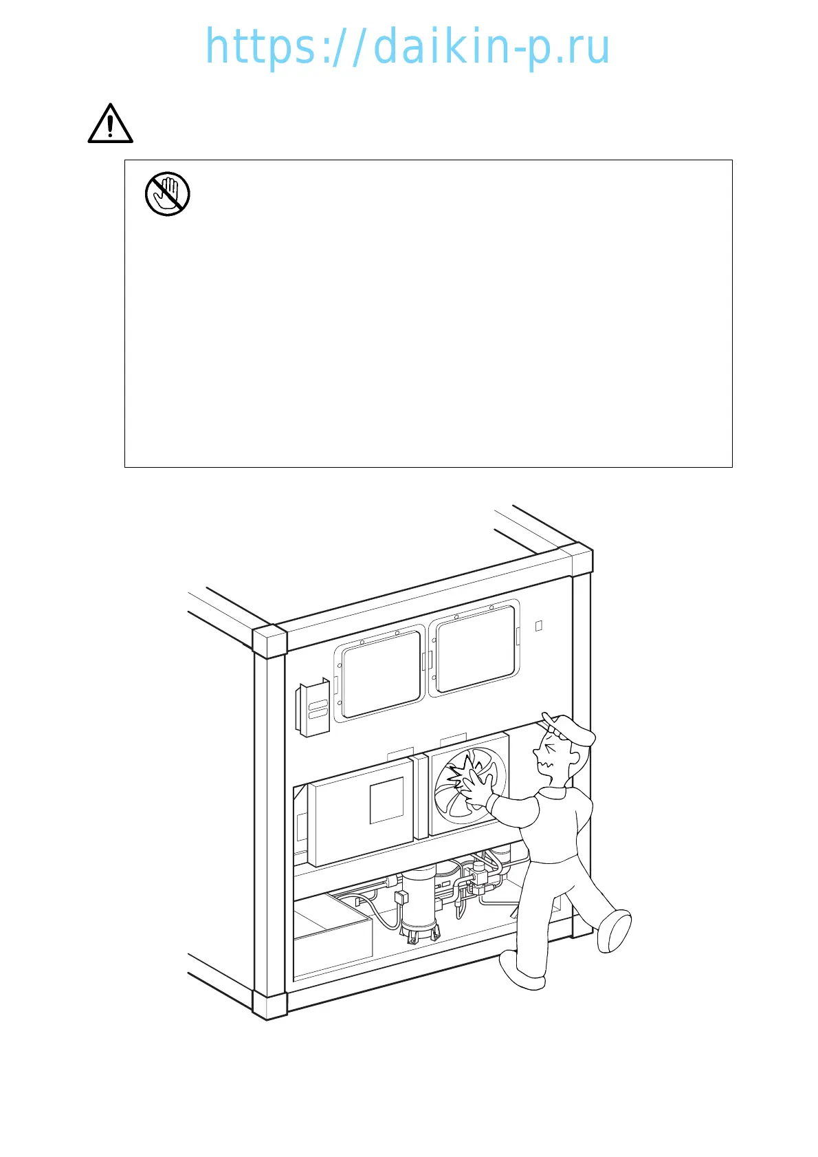 Before removing the condenser fan cover, turn off the