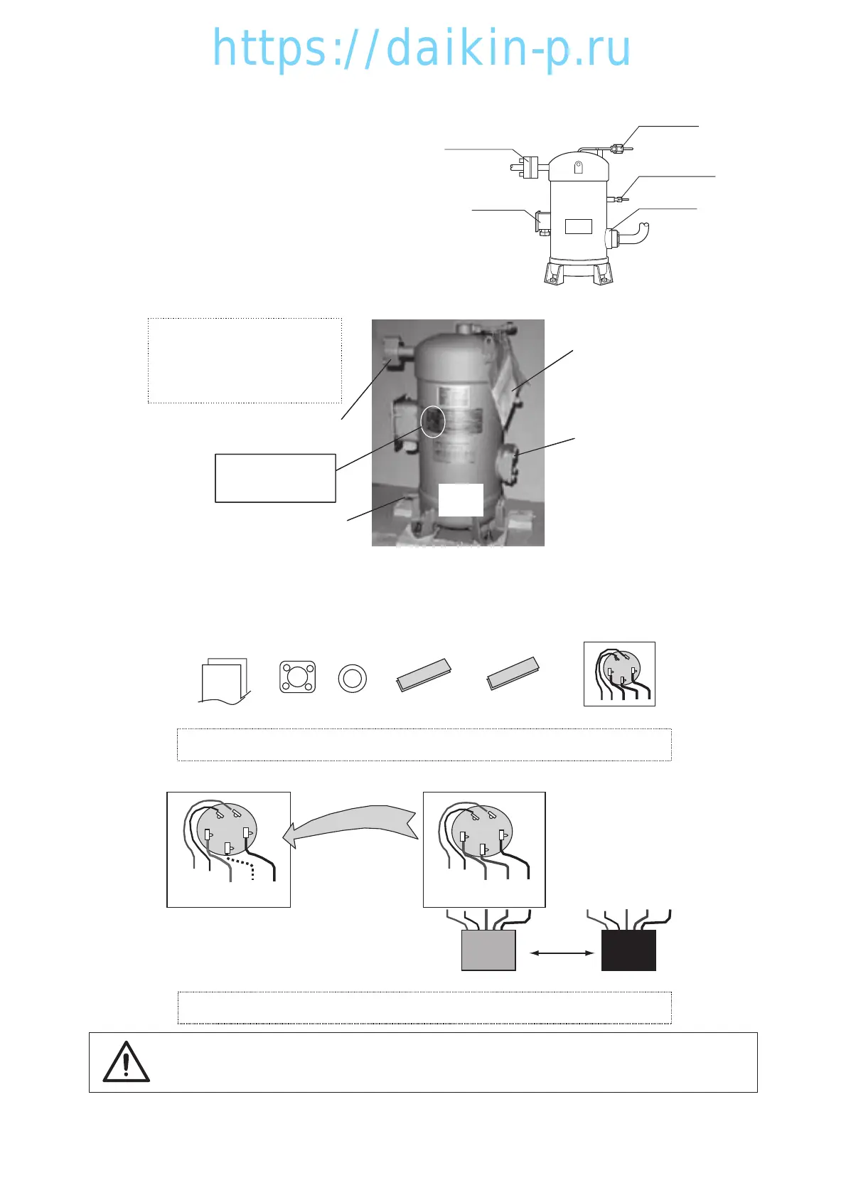 Note 2. Don't drop the precharged refrigerant oil out after removing the blind flanges.