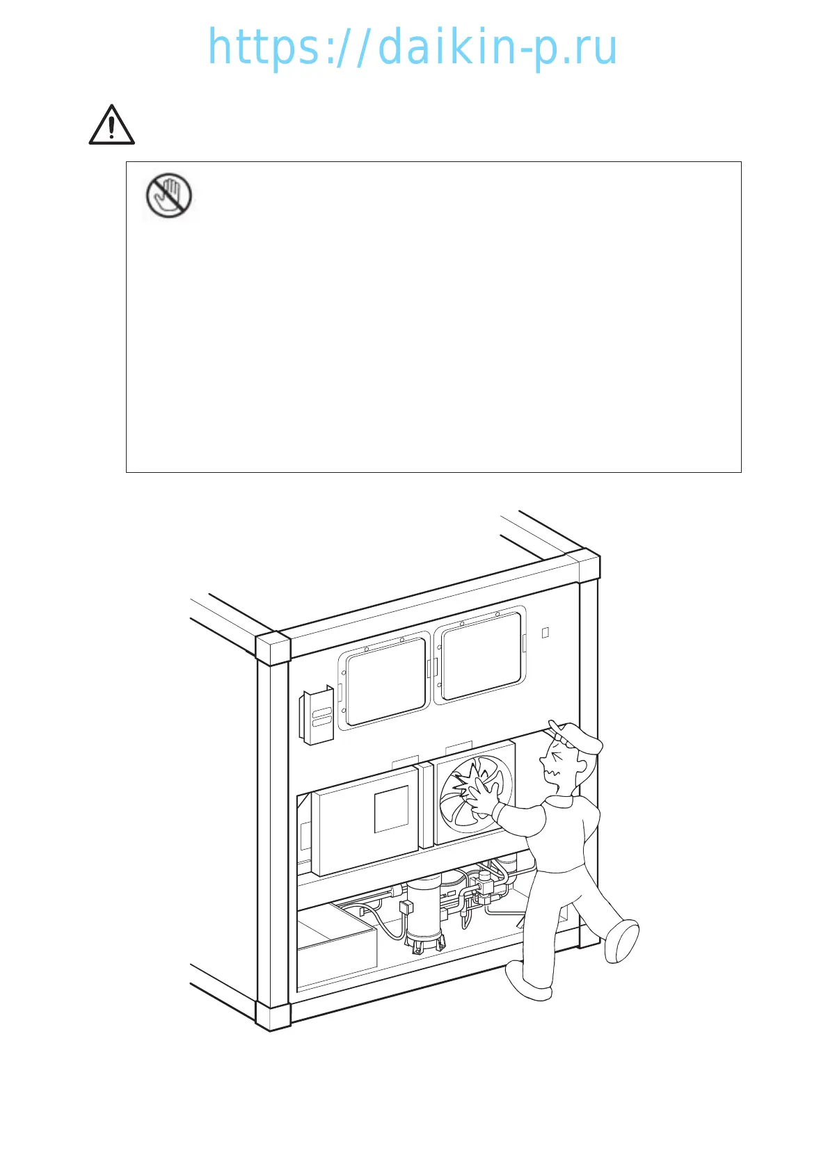 Do not touch the condenser fan while power to the