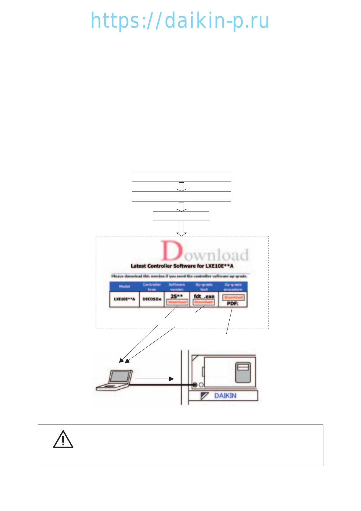software of the latest version and the tool for version upgrade (only once) from the DAIKIN HOME PAGE