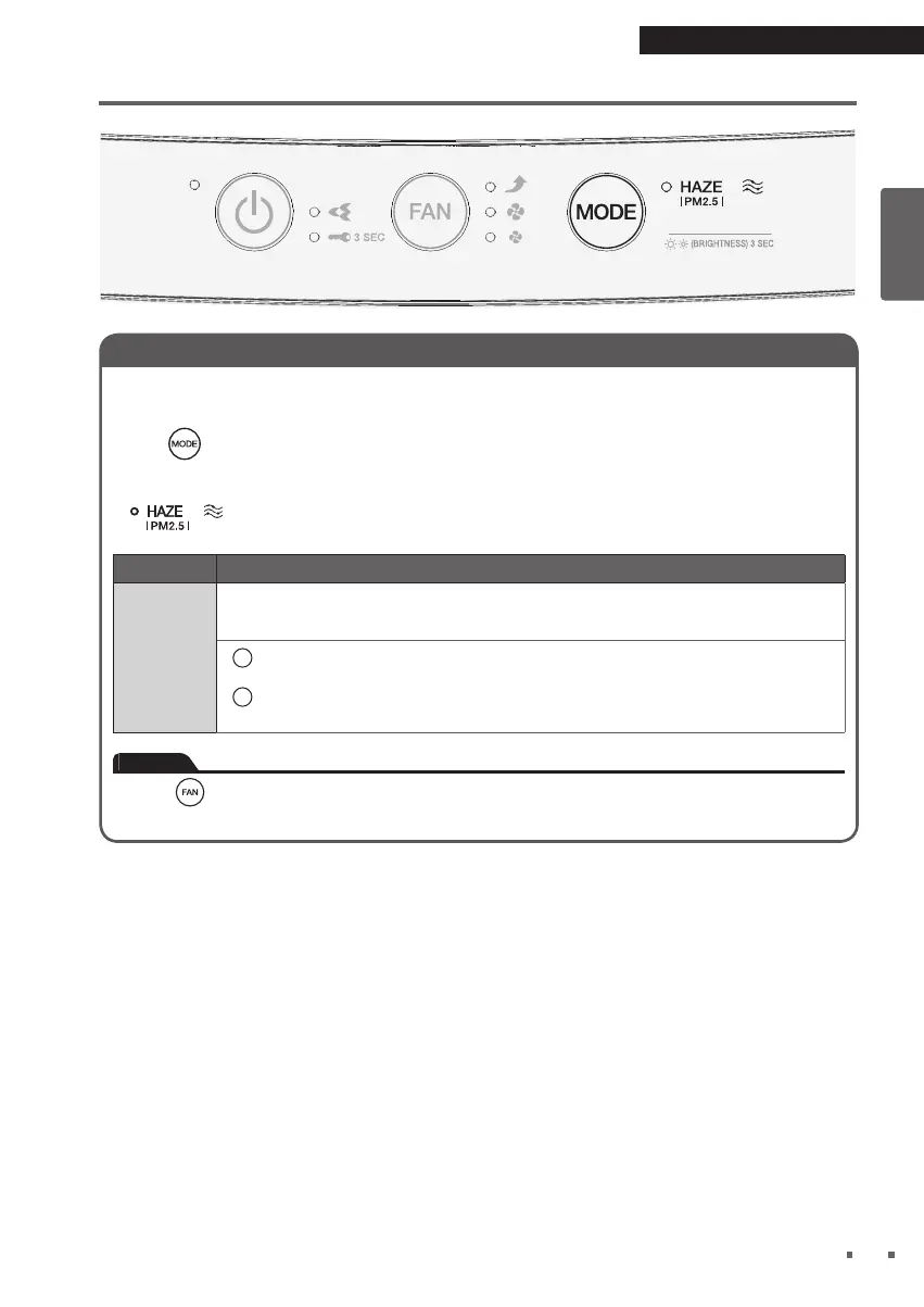• Ketika MODUS KABUT diakhiri, kecepatan kipas akan kembali ke kecepatan sebelumnya.
