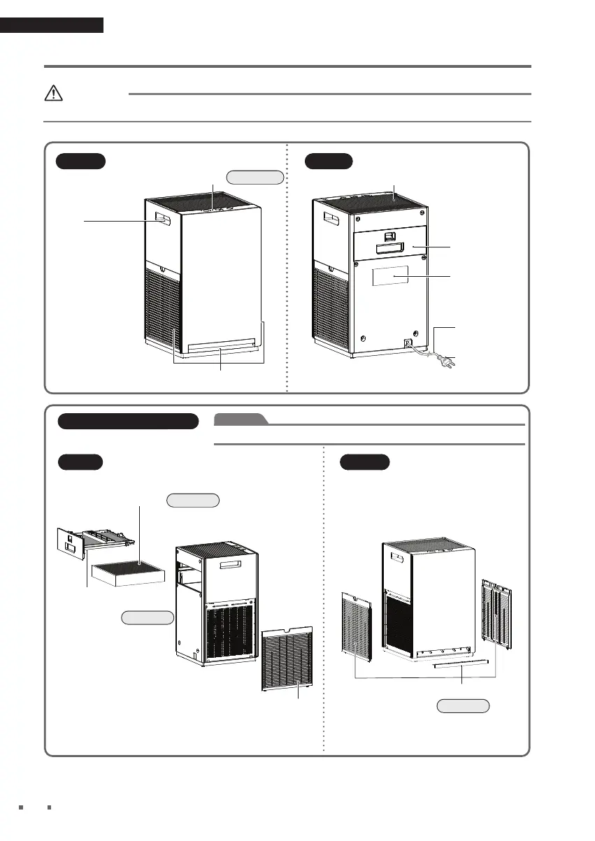 Do not lift up the unit holding the grip on the deodorising fi lter unit. (May lead to falling over)