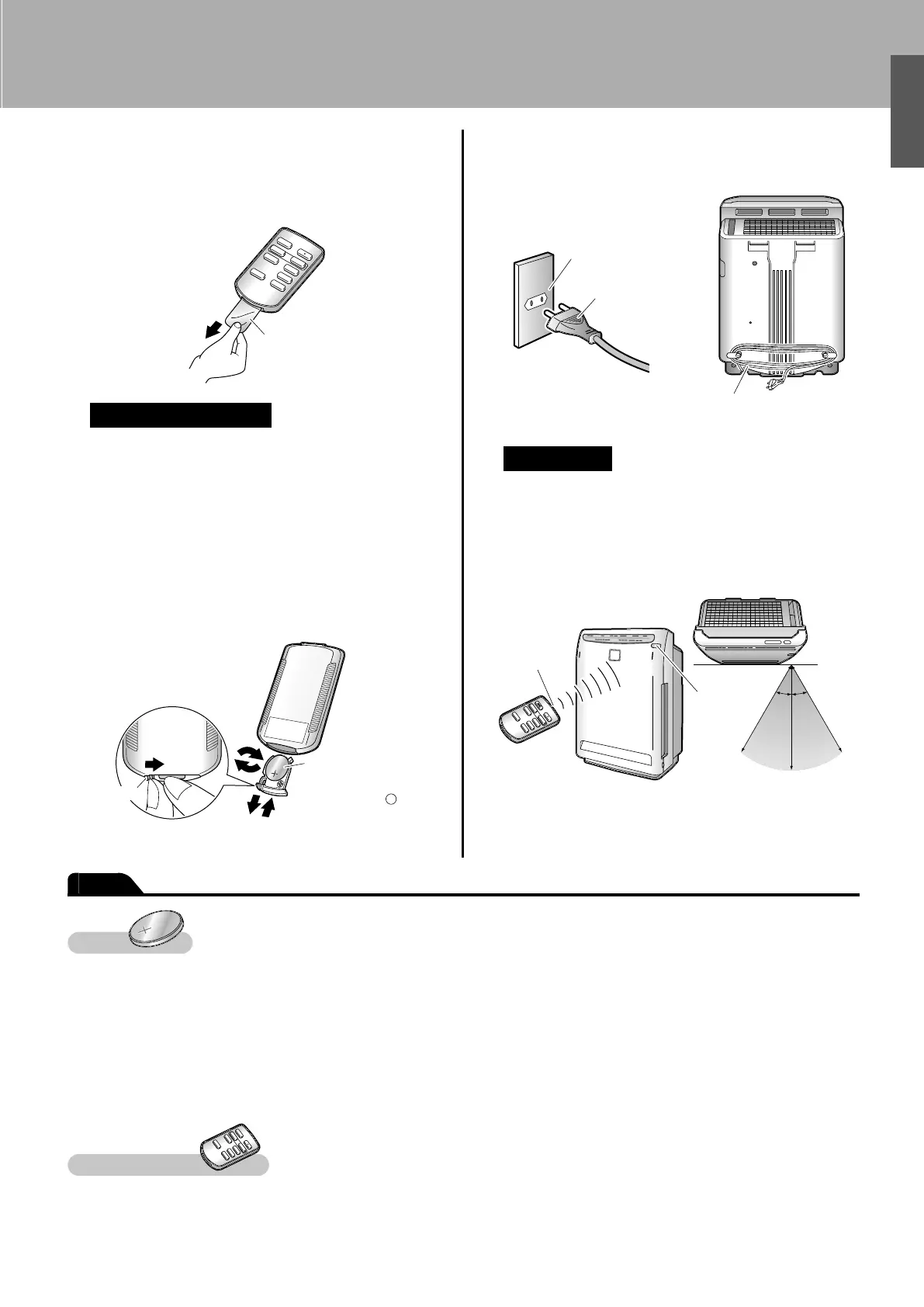 The coin type battery which comes with the remote controller is for the initial operation. The coin type battery may run down in less than •