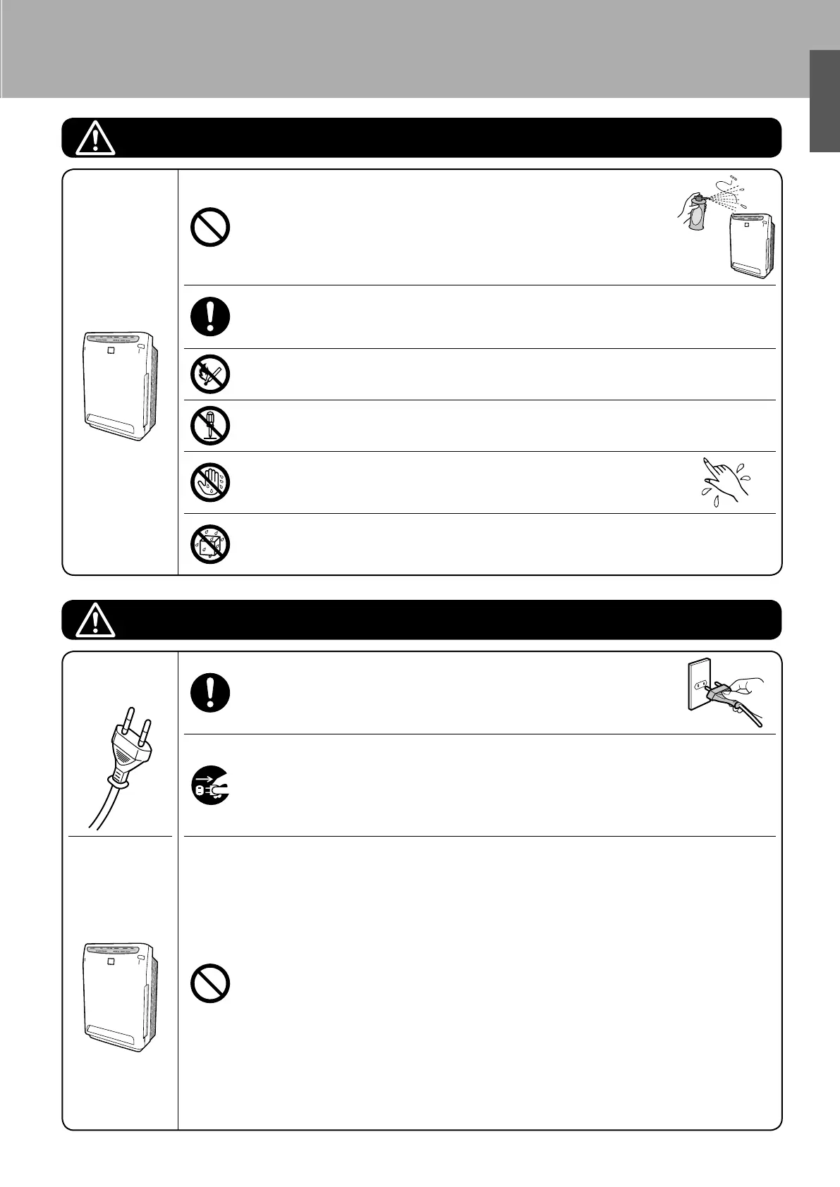 Keep cigarettes, incense and other naked fl ames away from the unit. •