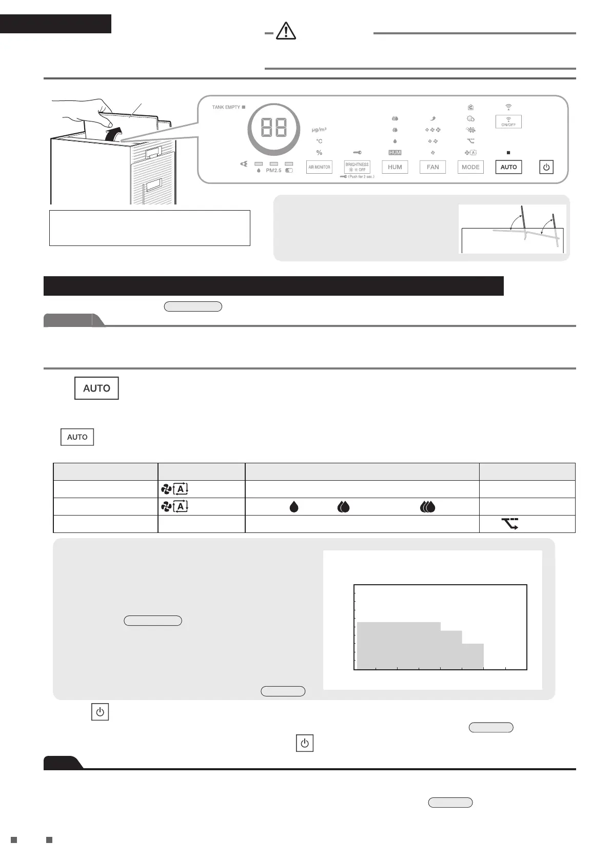 • If the set humidity is reached or the water supply lamp lights up during Humidifying Operation, Humidifying Operation will stop,