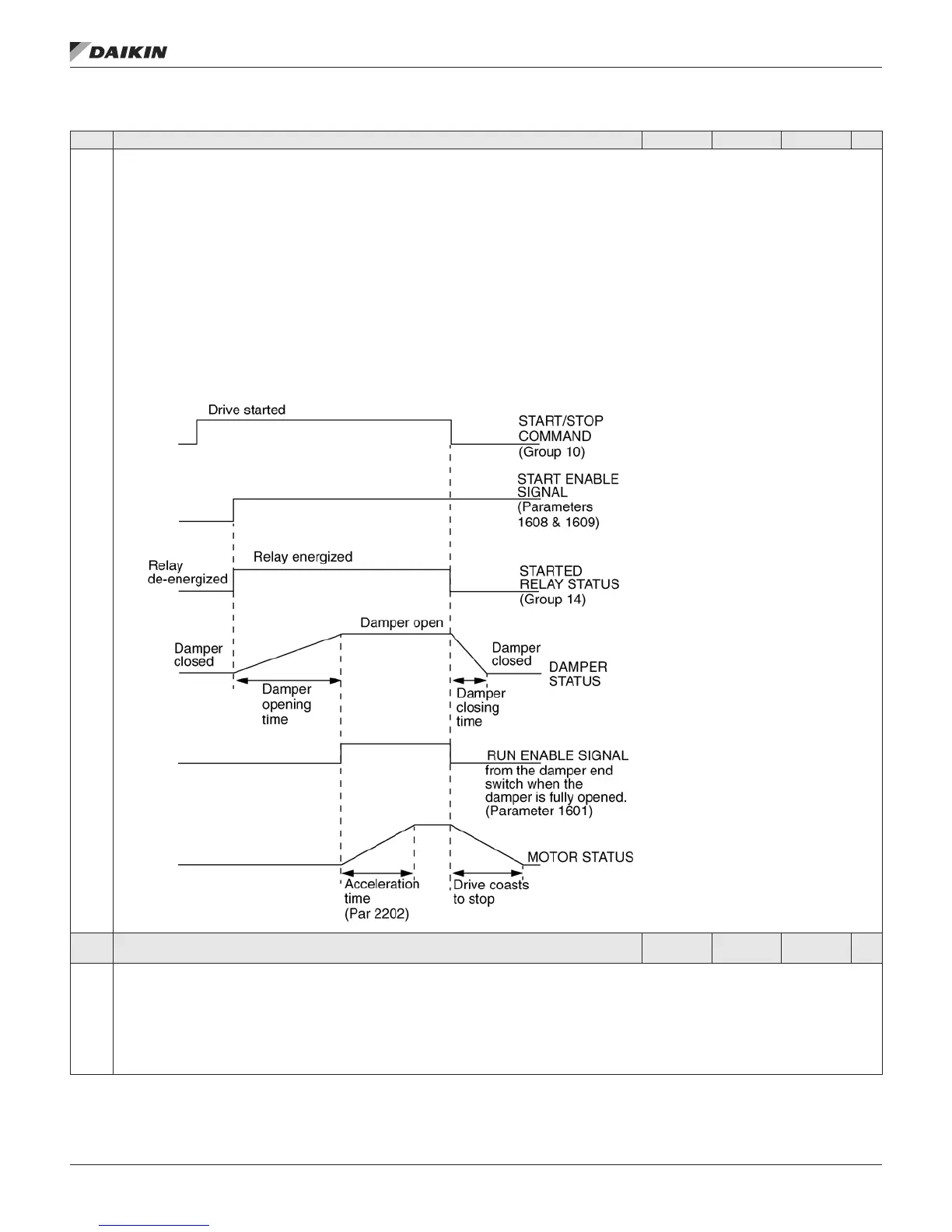 • If the voltage drops and de-activates this digital input, the drive will coast to stop and show alarm 2021 on the panel display. The drive will not start until