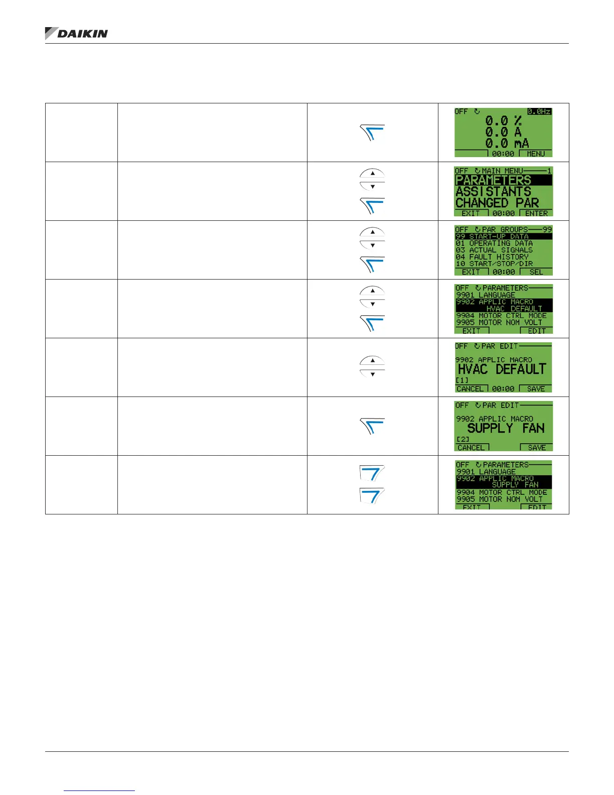 Select the appropriate parameter group with the UP/