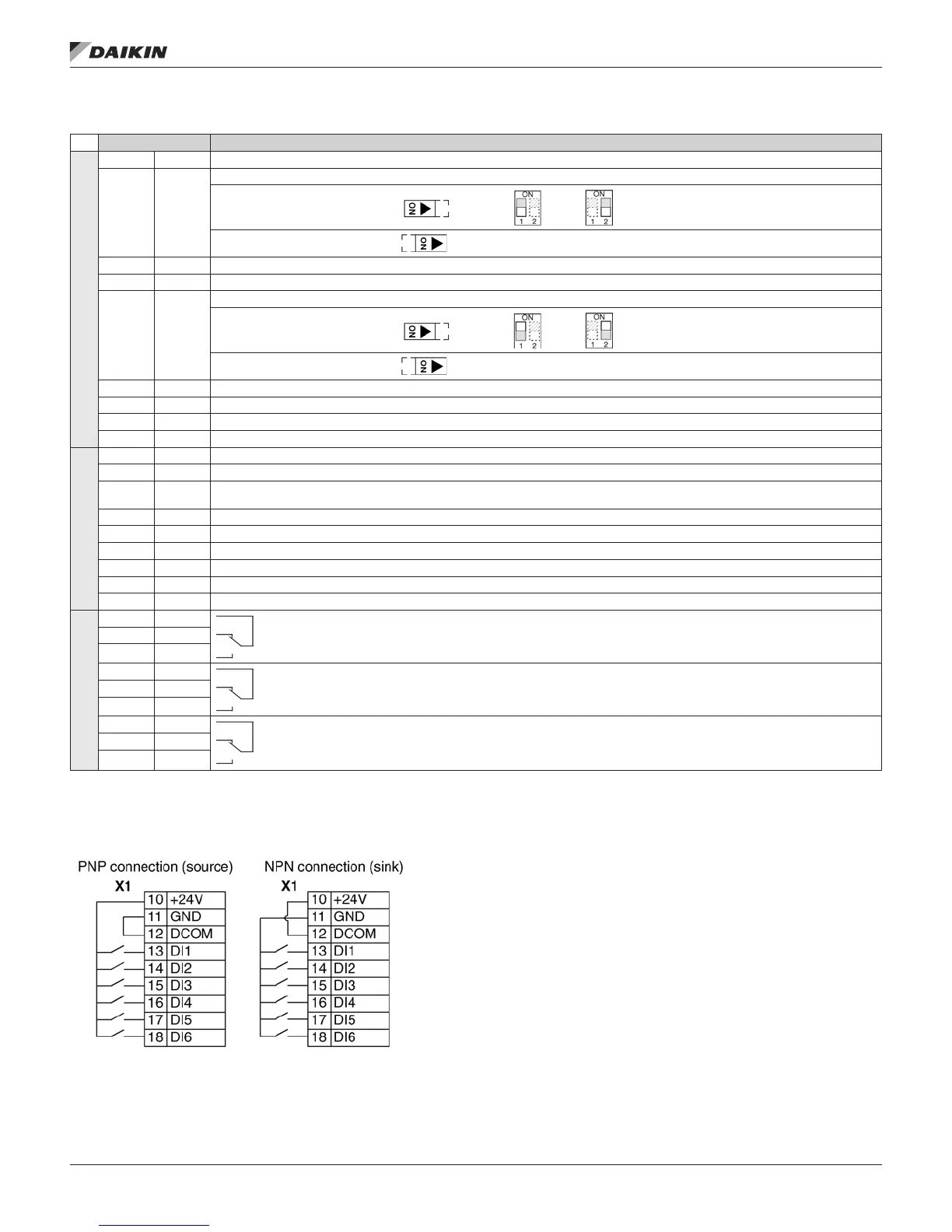 You can wire the digital input terminals in either a PNP or NPN