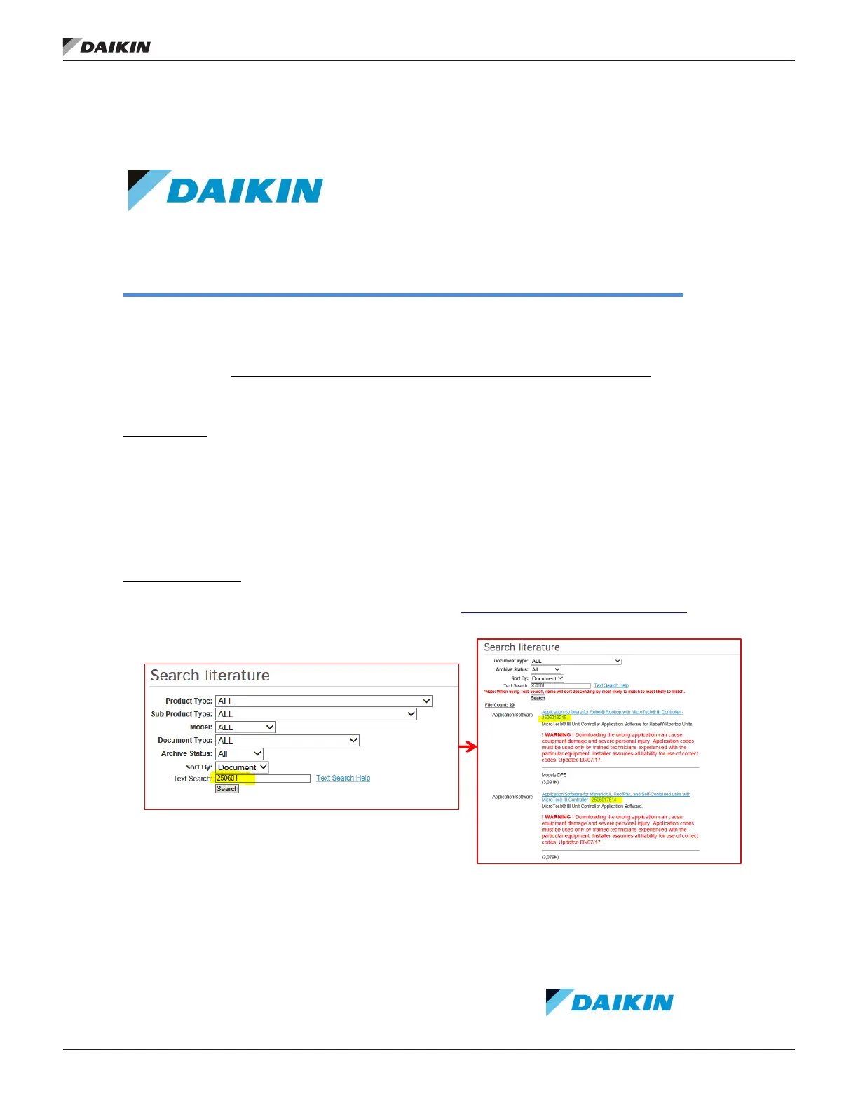 1. To download the software code files online, navigate to http://www.daikinapplied.com/search.php