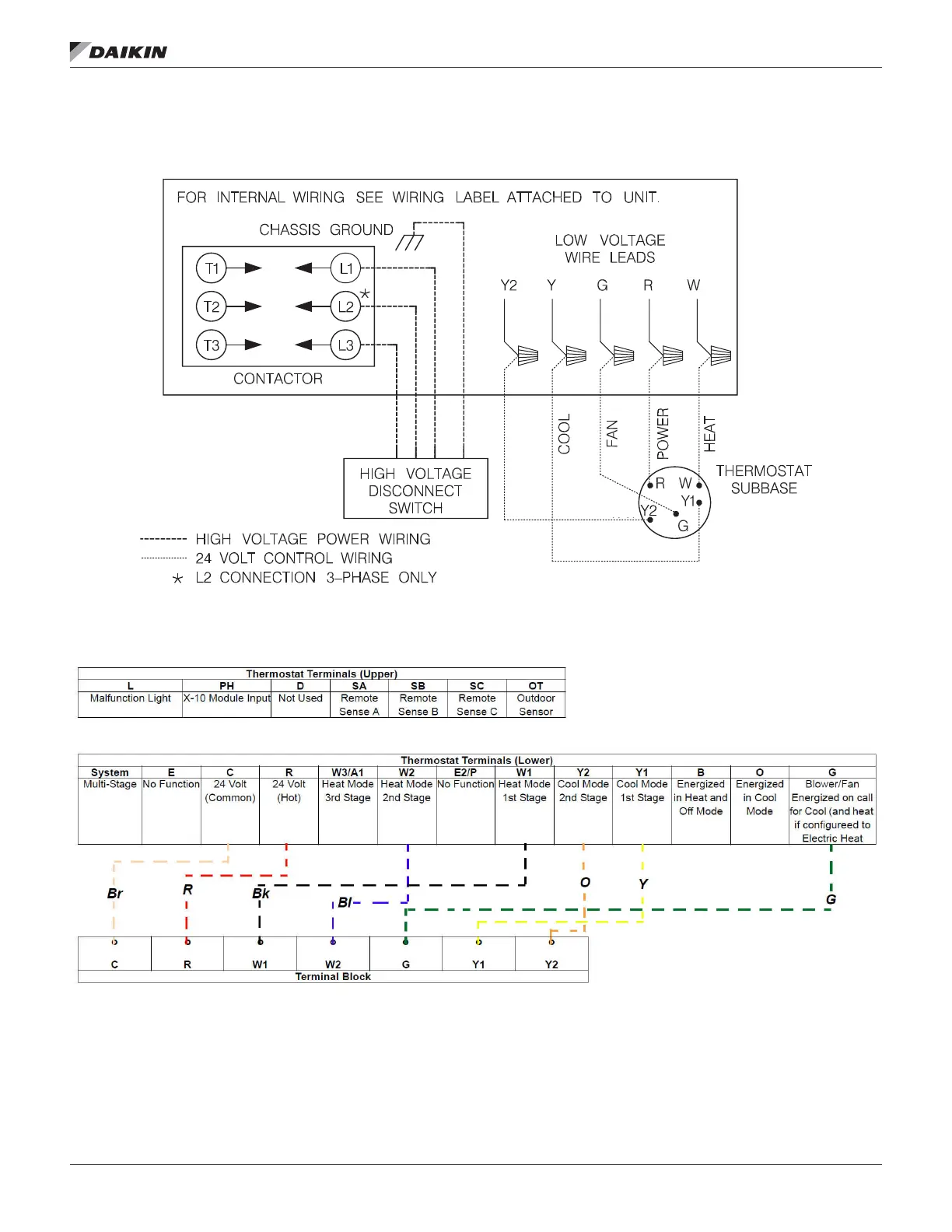 Daikin MPS025B - Electrical Installation - Wiring Diagrams; Thermostat Wiring Diagrams
