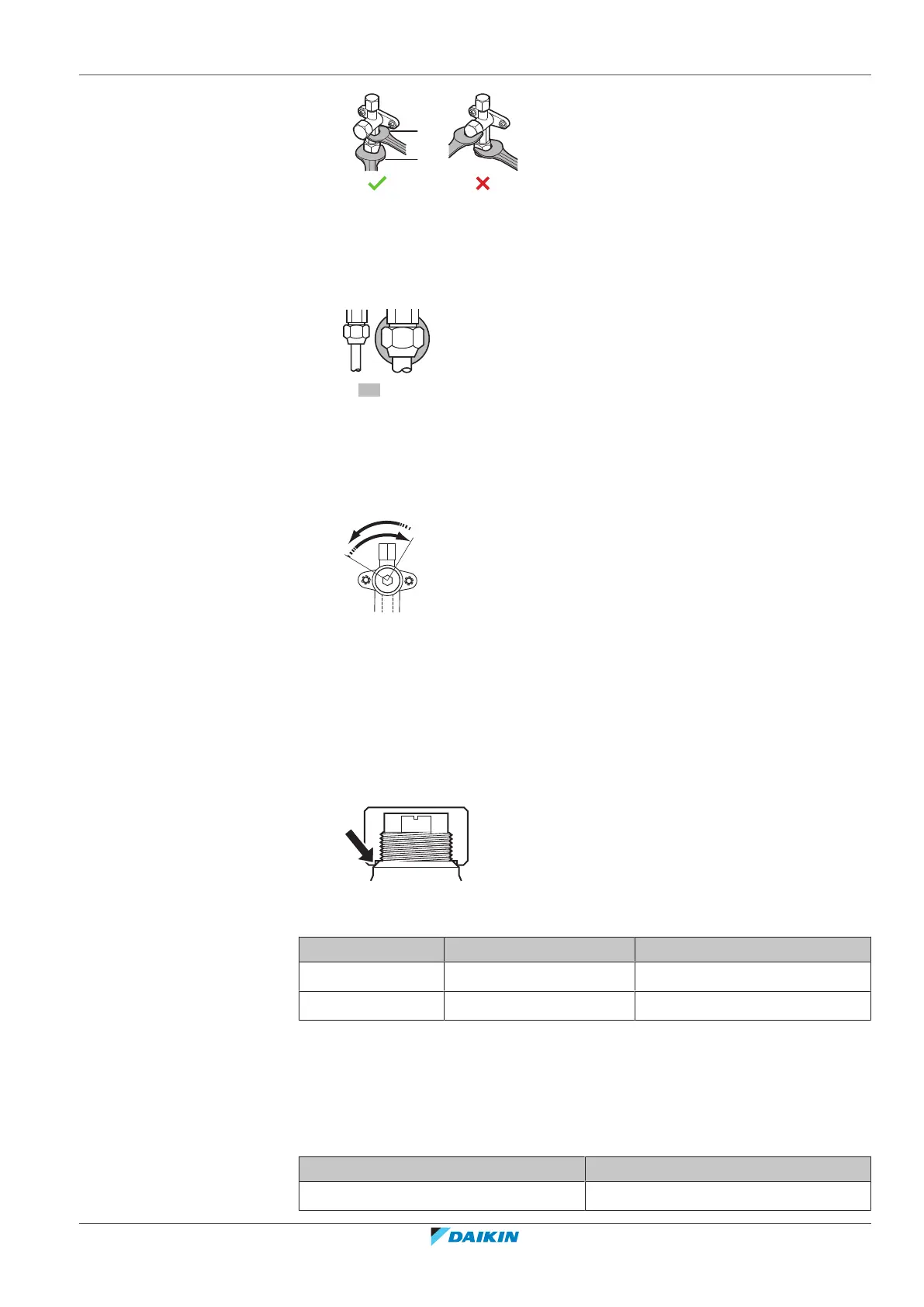 2 Insert a hexagon wrench (liquid side: 4 mm, gas side: 6 mm) into the valve