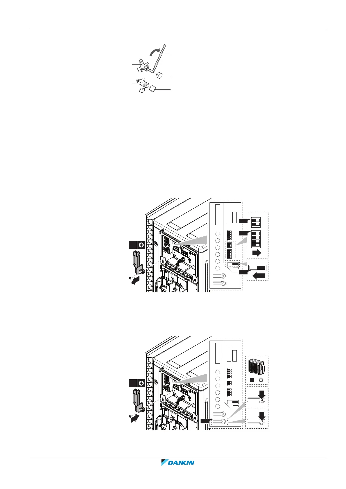 1 Turn OFF the power, remove the service cover and the switch box cover and