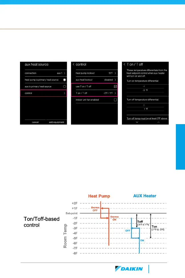 – T on differential: -7°F to 3°F in 1°F increments (default 3°F)