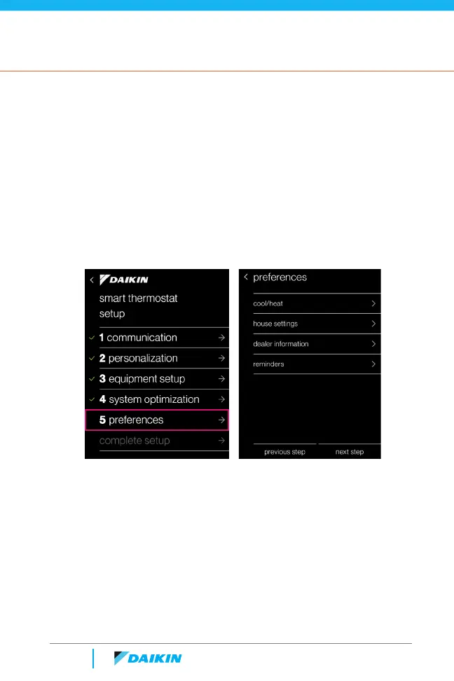 Daikin One+ - Begin Set-Up; Step 5: Preferences