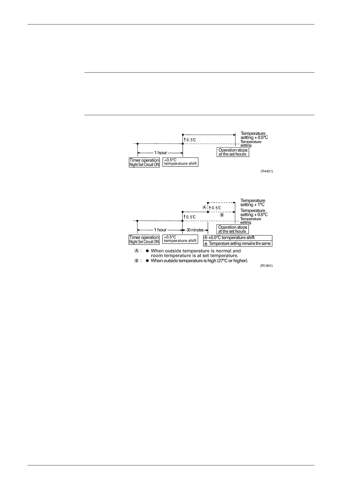 The NIGHT SET circuit continues cooling the room at the set temperature for the first one hour,