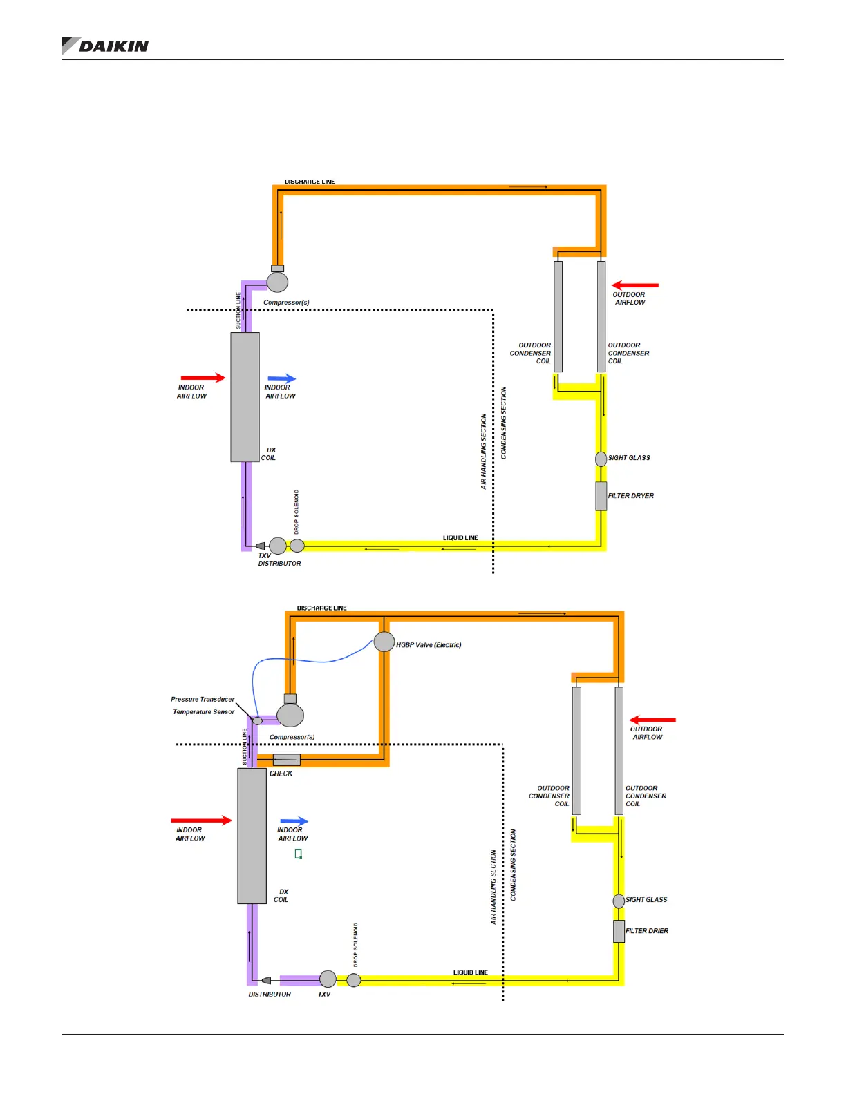 Daikin Rebel Applied DPSA - Refrigeration Piping; Schematic, Standard Circuit; Schematic, Hot Gas Bypass Circuit