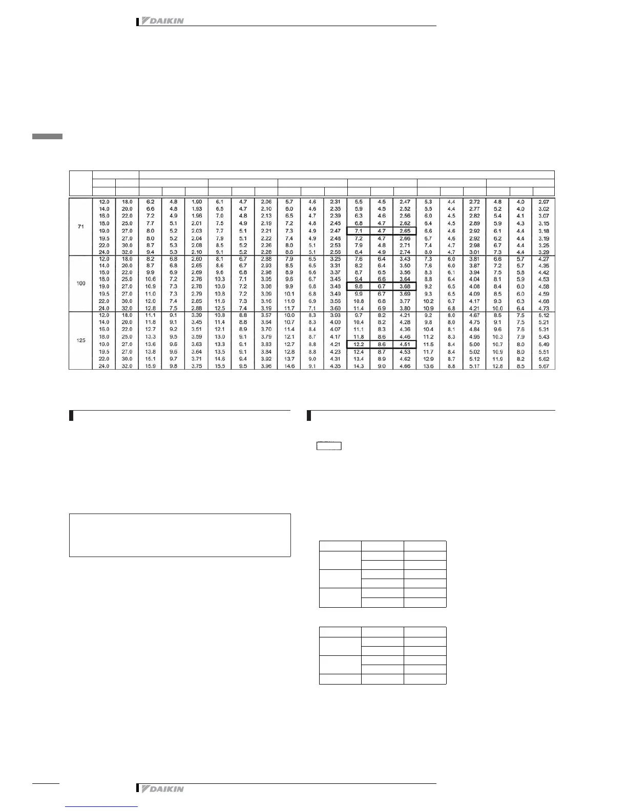 Cooling capacity table