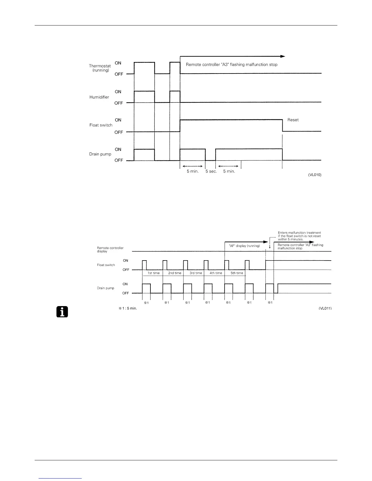 During heating operation, if the float switch is not reset even after the 5 minutes operation, 5