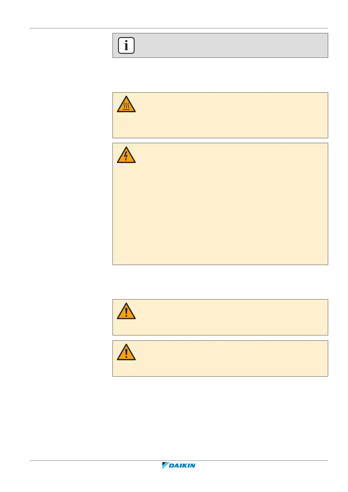 ▪ Do NOT touch the refrigerant piping, water piping or internal parts during and