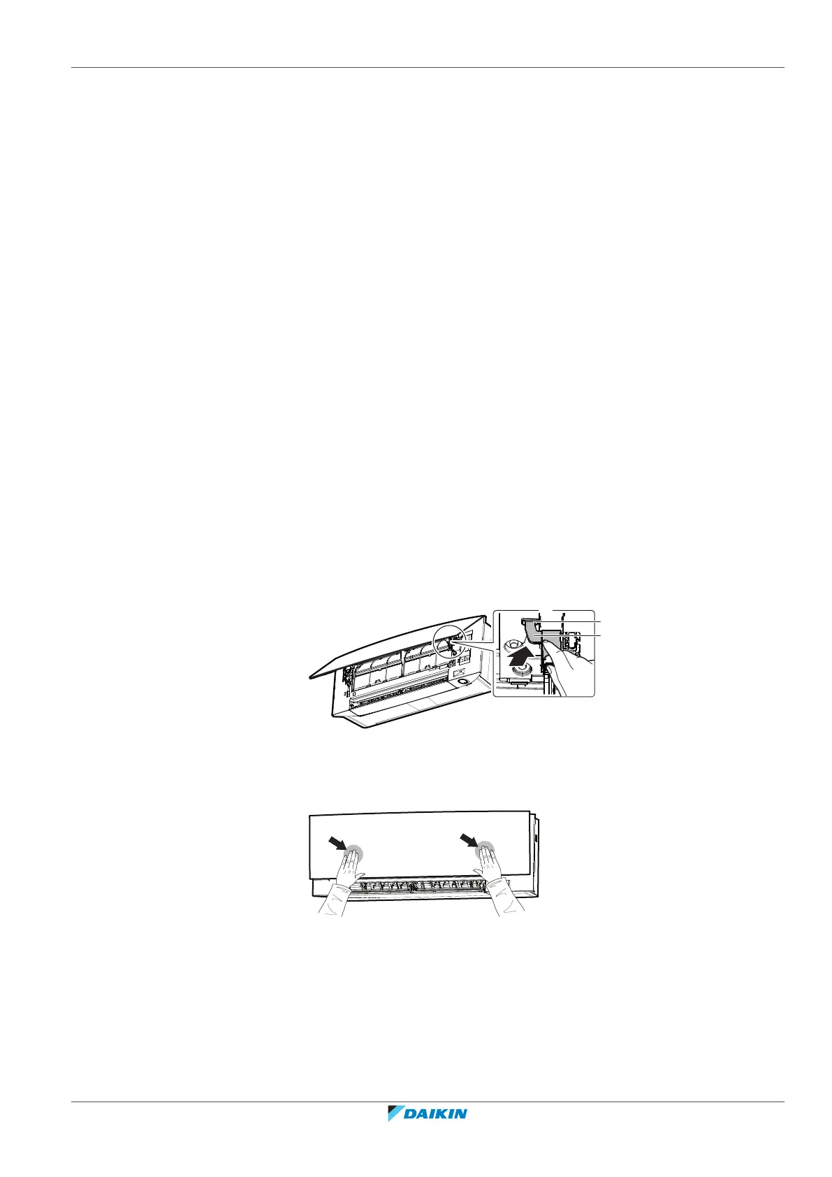 1 Install the front grille and firmly engage the 3 upper hooks.