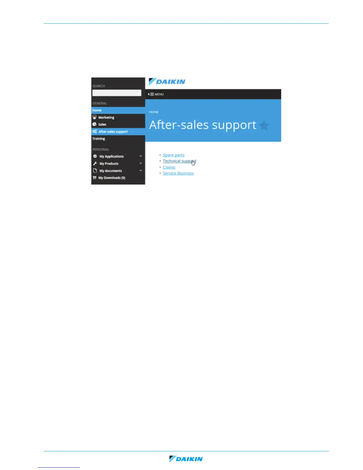 Go to the tab “After-sales support” on the left side and then select “Technical support”.