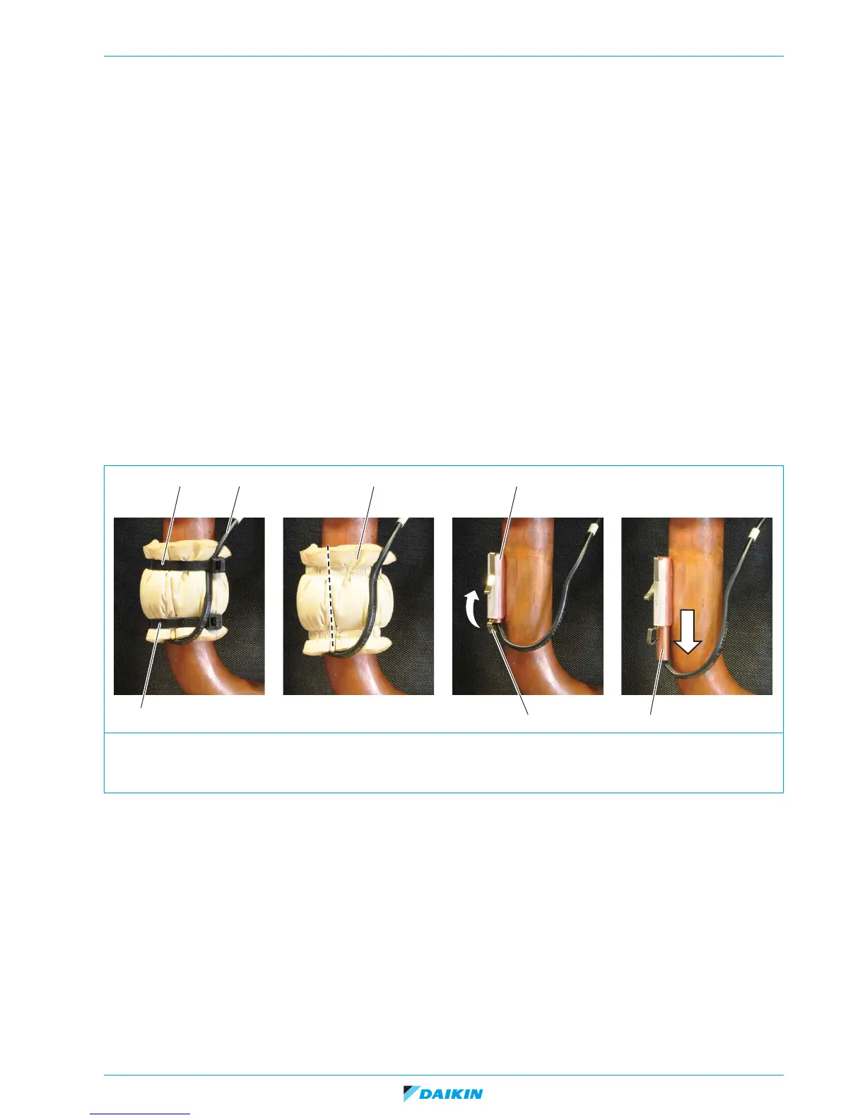 2. Cut the tie wraps (1) that fix the insulation (3) and the thermistor wire (2).