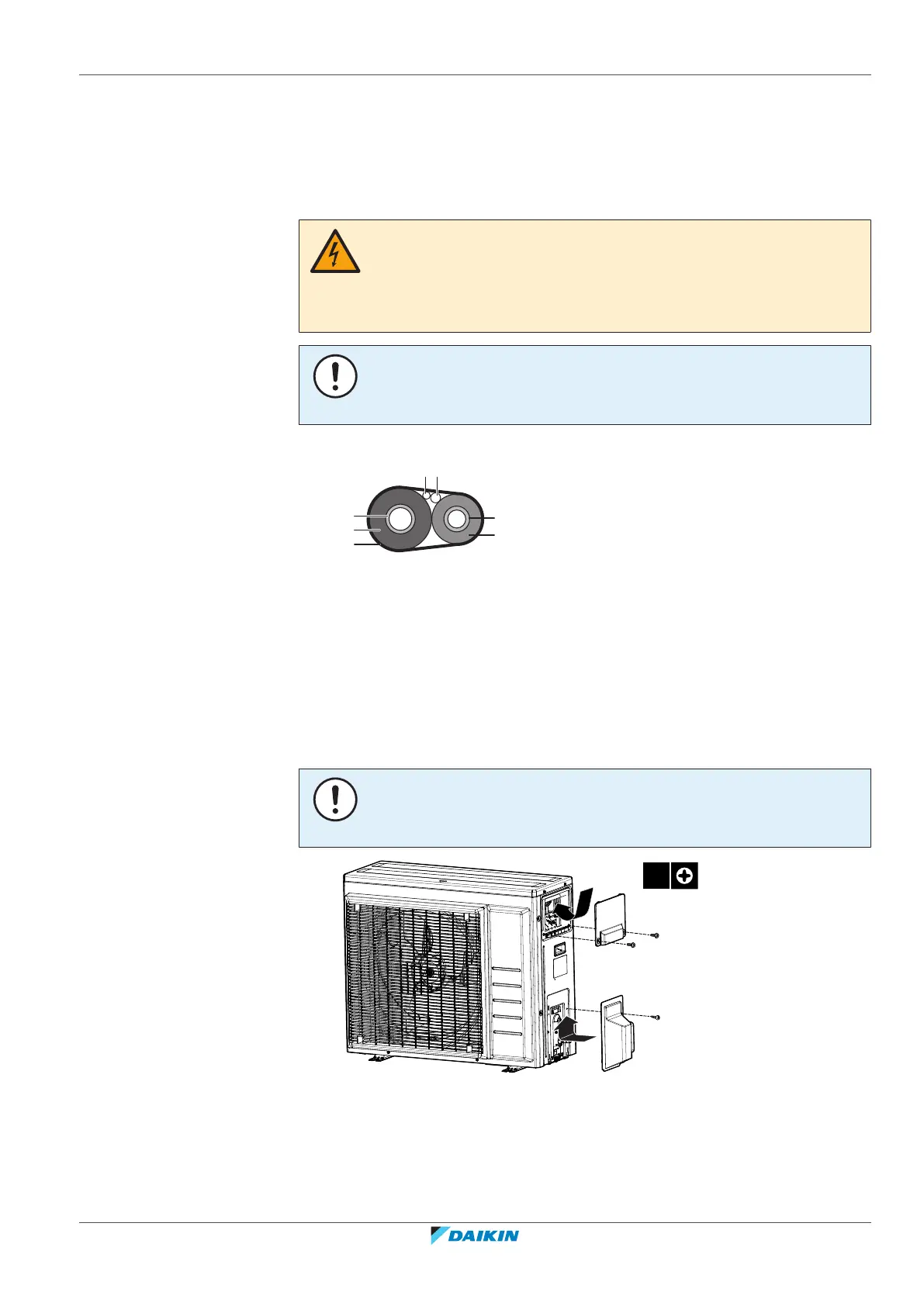 1 Insulate and fix the refrigerant piping and cables as follows: