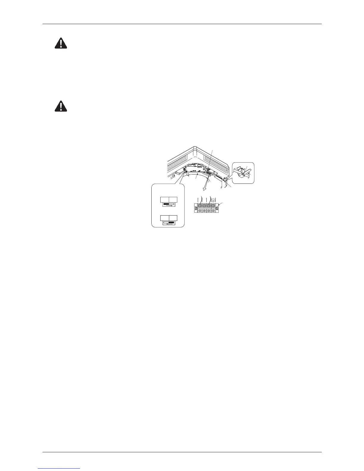 and ground wire to the inter-unit wiring (50Hz 220-240V) terminal block and confirm drain