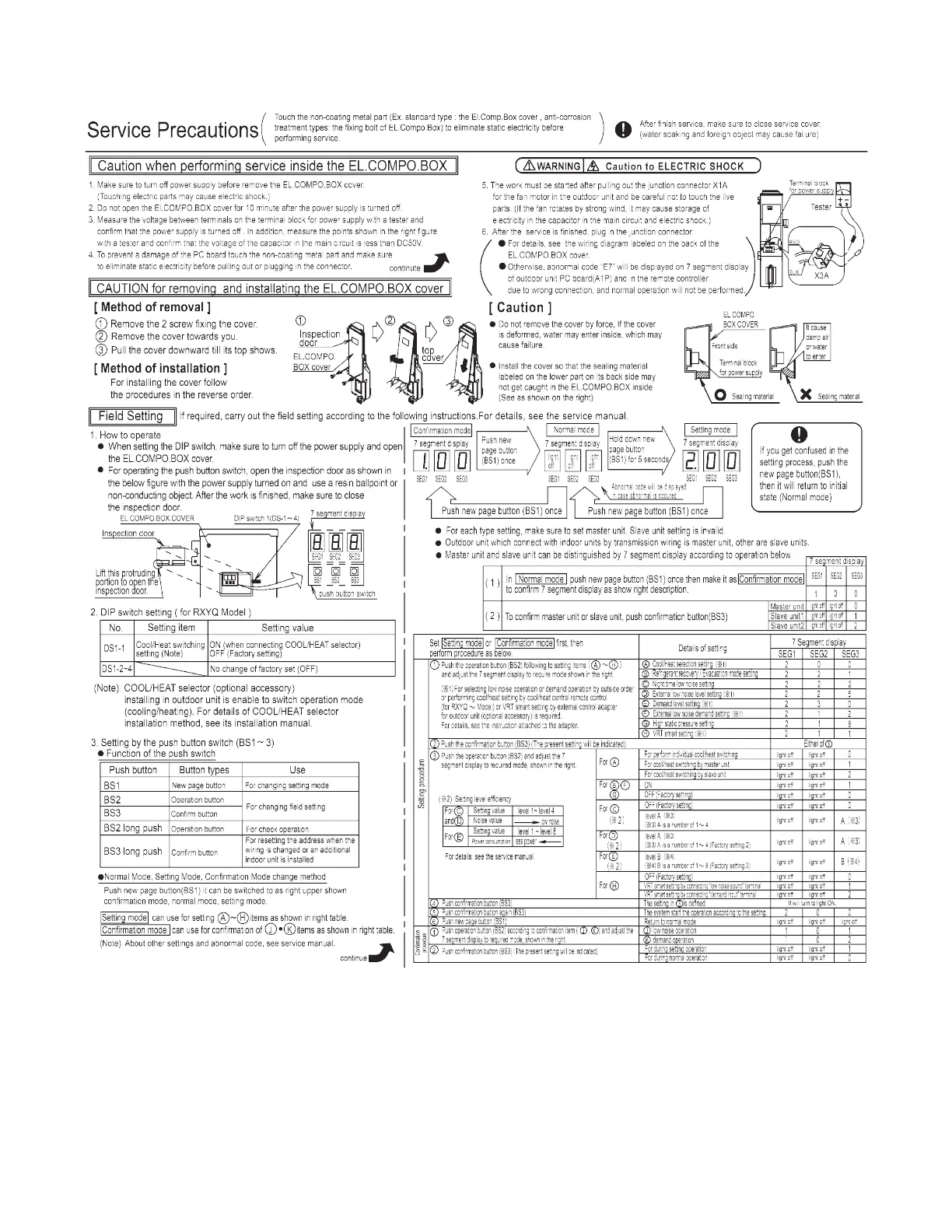 Daikin RXQ8AYM - 6.1 RXQ6 AYM; RXQ8 AYM; RXQ10 AYM; RXQ12 AYM; Caution when performing service inside the EL.COMPO.BOX; Field setting