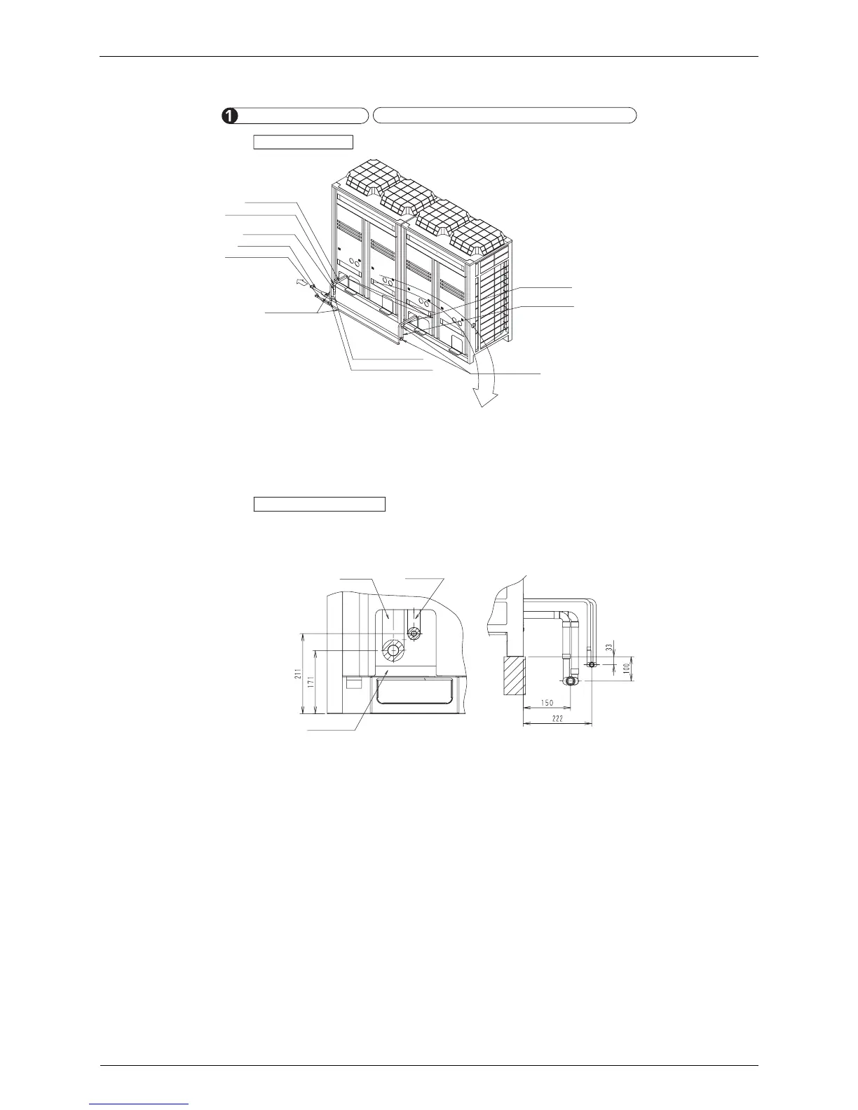 When the dimensions exceed the standard installation, extend the pipes between the outdoor